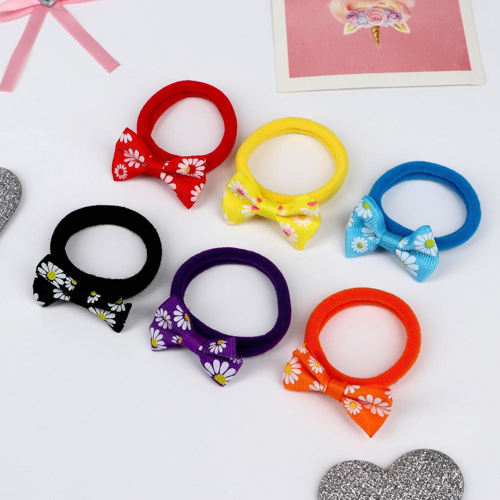 Резинка для волос "Глория" (набор 6 шт) ромашки, 3,5 см, микс