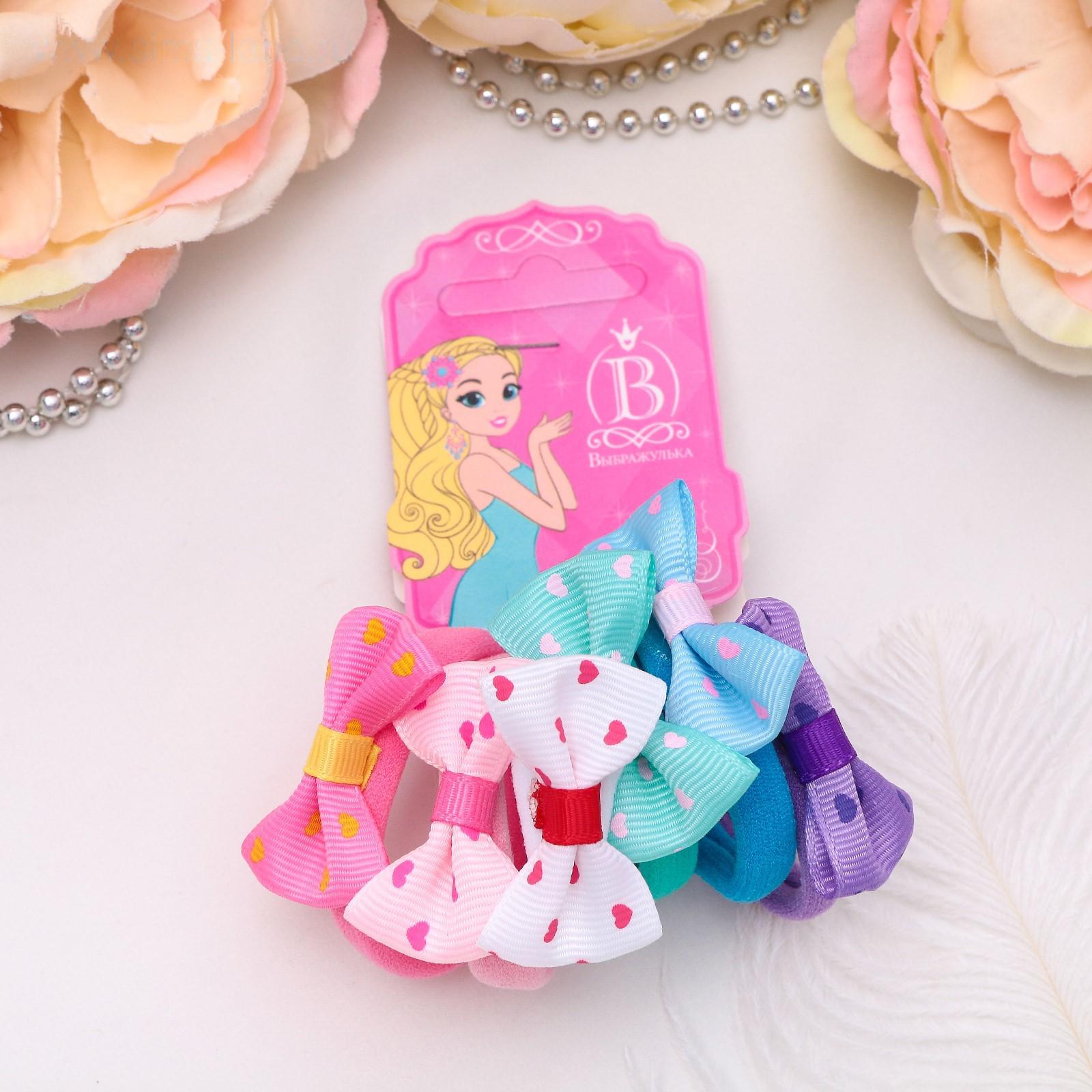 Резинка для волос "Бантик" (набор 6 шт) мини сердечки, микс