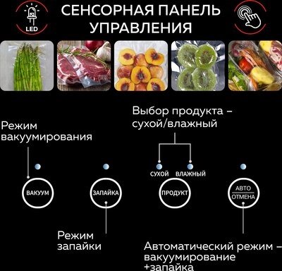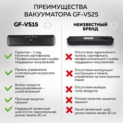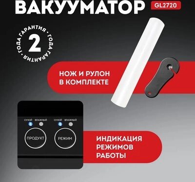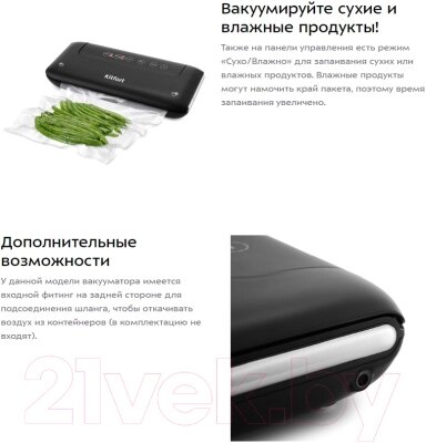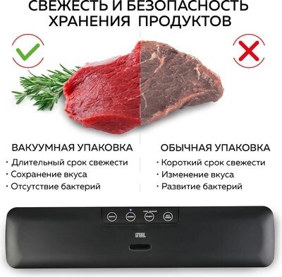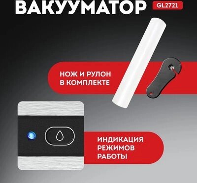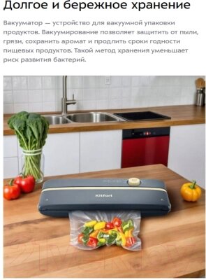 • Вид упаковочного материала в комплекте вакуумные пакеты, рулоны для вакуумизации