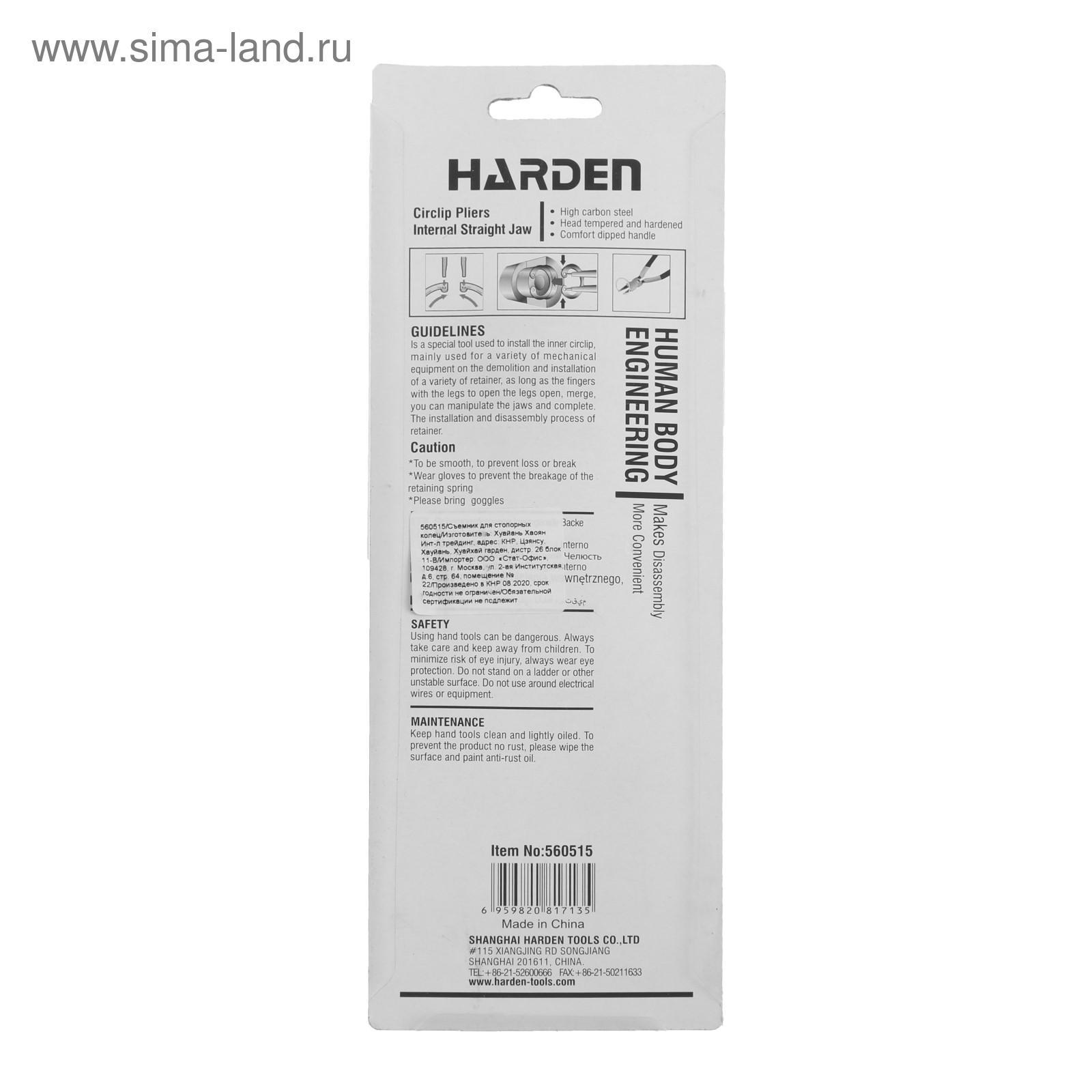 Съемник стопорных колец HARDEN 560515, внутренний, прямые губки, 230 мм