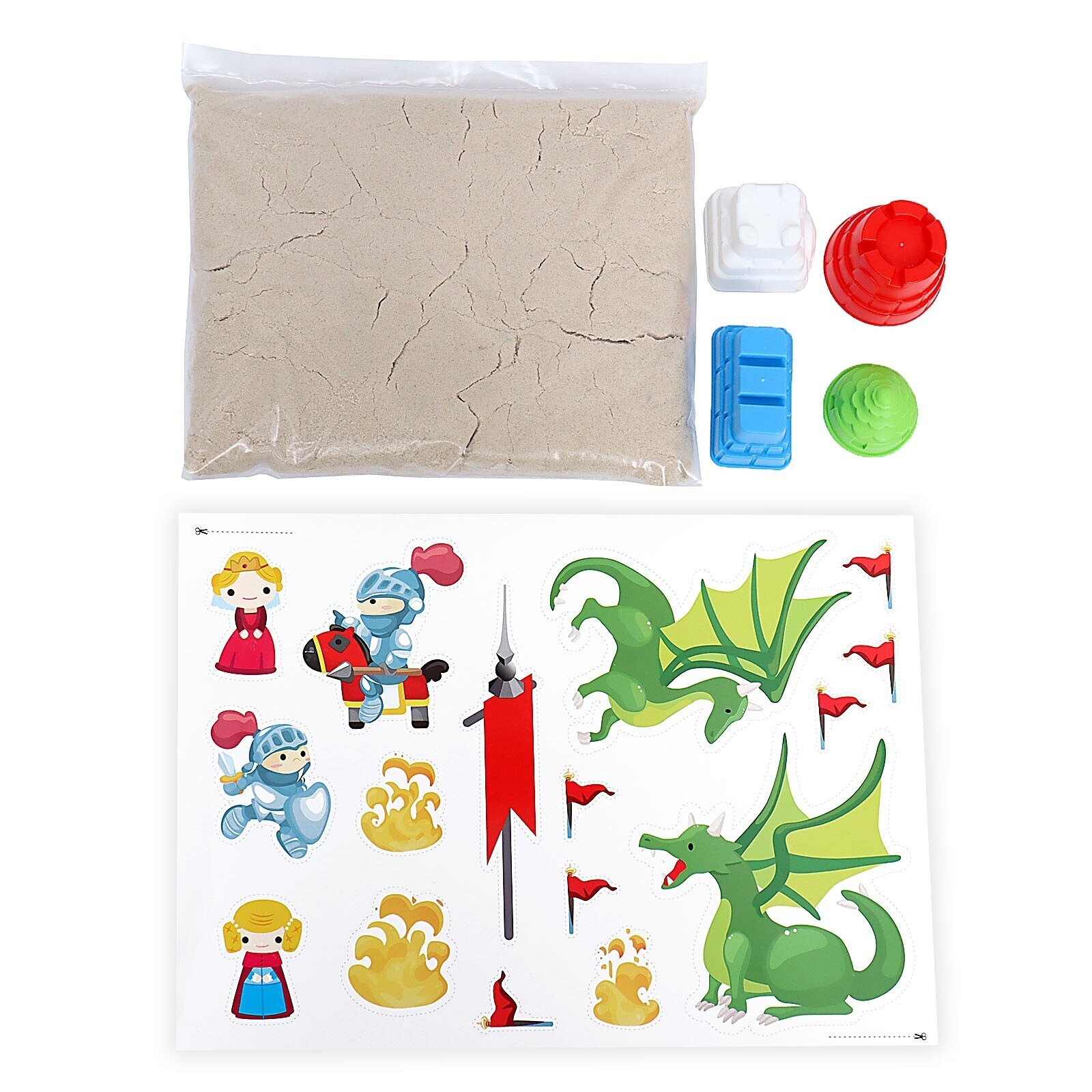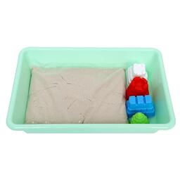В набор входит: умный песок, 1 кг; пластиковая песочница, 1 шт.; вырезные элементы, 1 шт.; формочки, 4 шт.