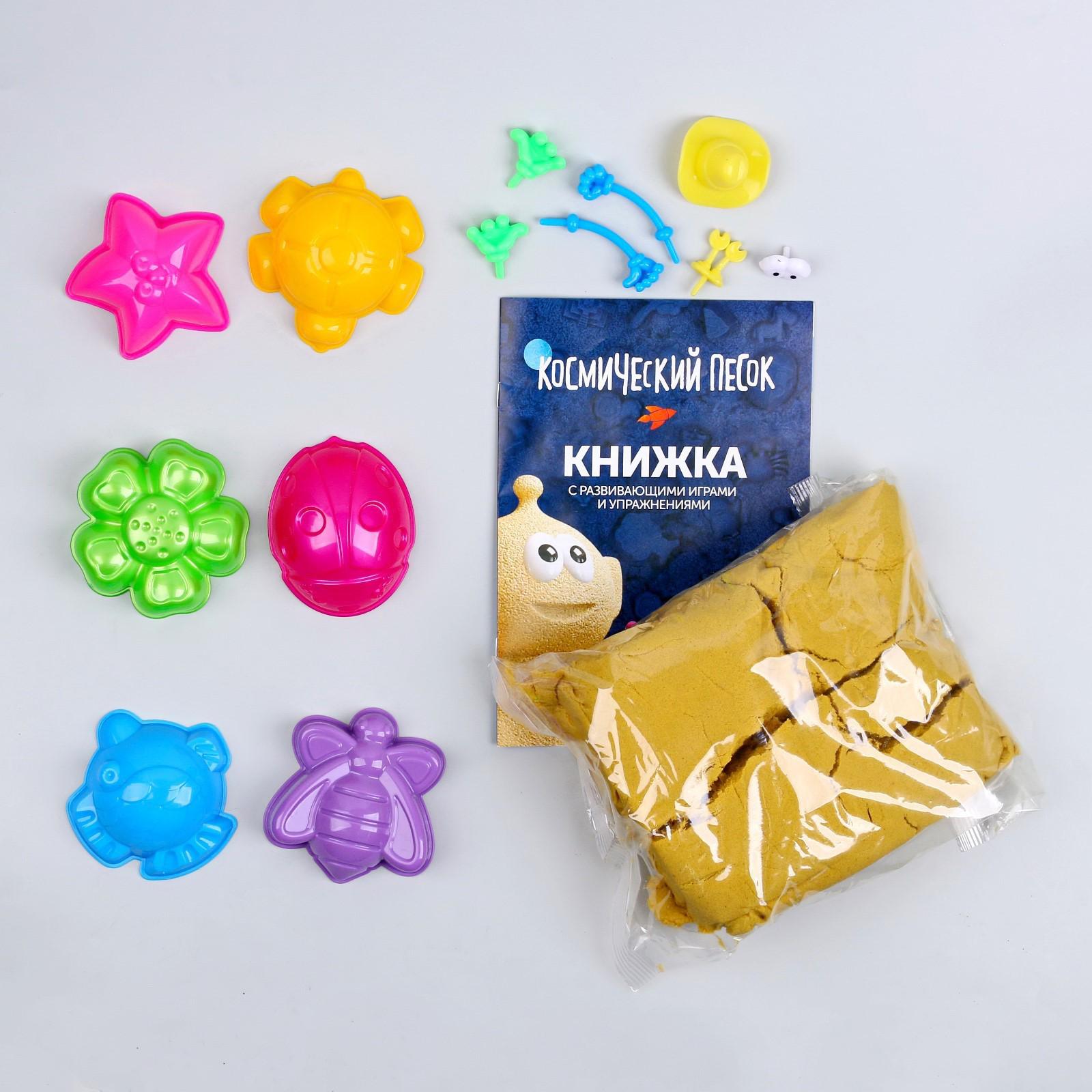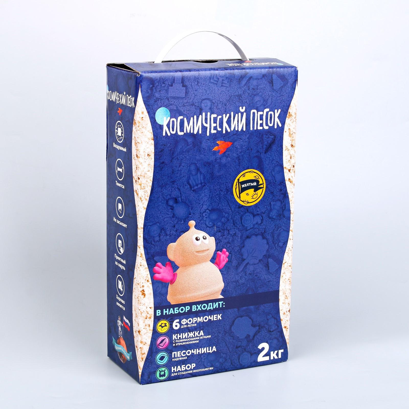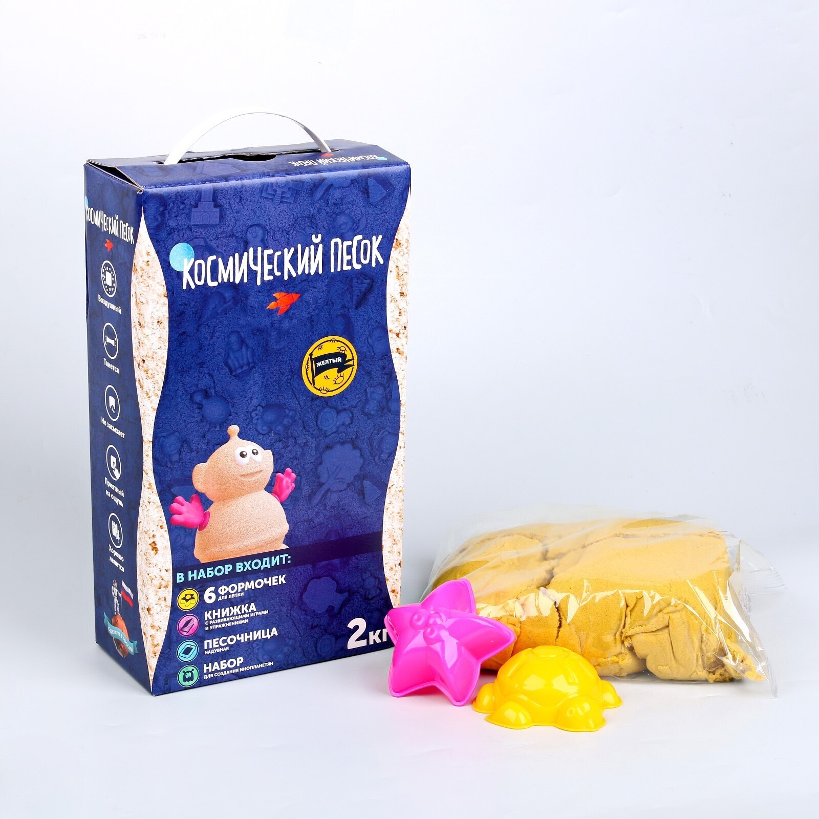 Космический песок жёлтый, 2 кг + песочница + формочки