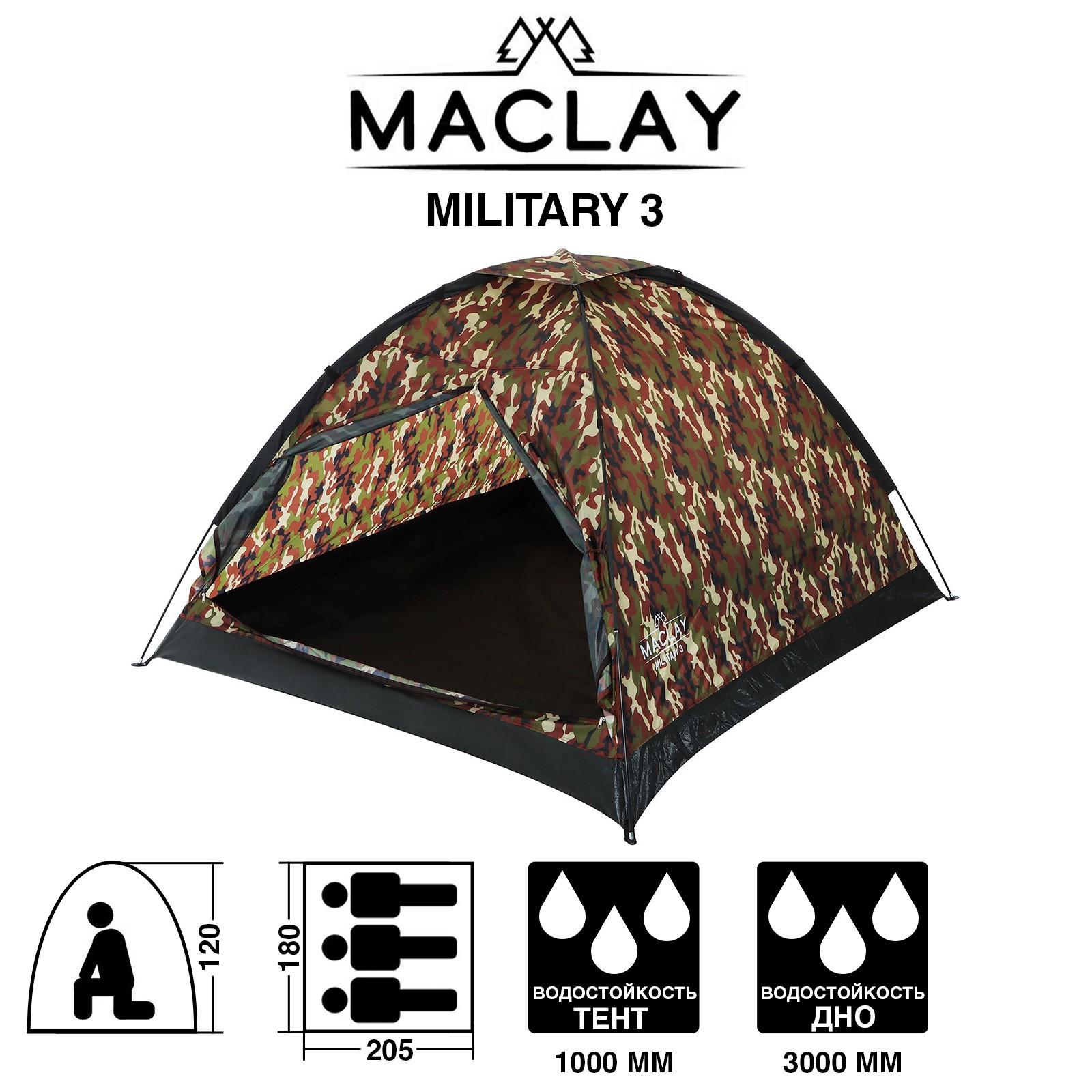 Палатка треккинговая MILITARY 3 размер 205 х 180 х 120 см, 3 х местная