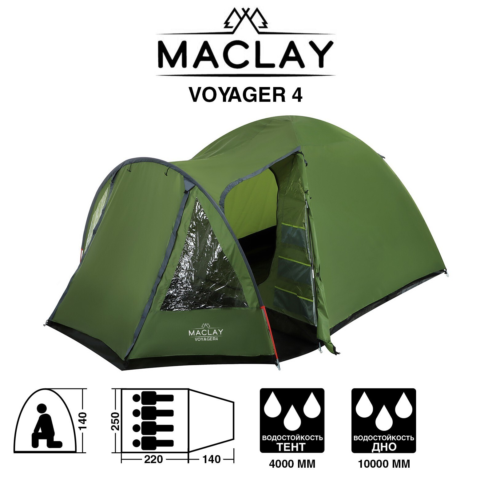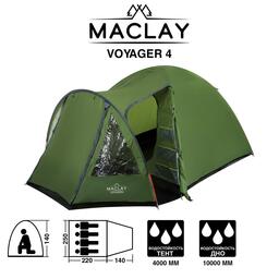 Палатка треккинговая VOYAGER 4, размер 250 x (220+140) x 140 cм, 4-местная
