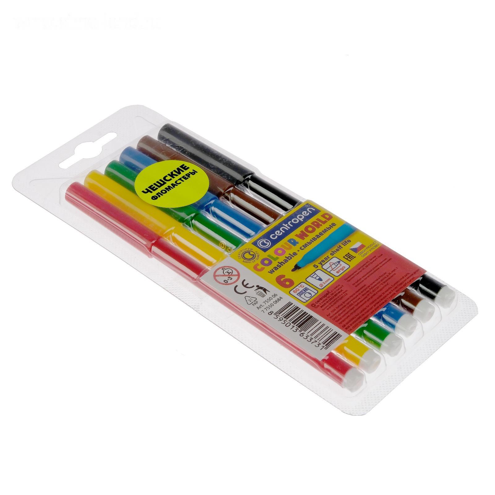 Фломастеры 6 цветов 2.0 мм Centropen 7550 ТП Colour World, блистер, смываемые, линия 1.0 мм