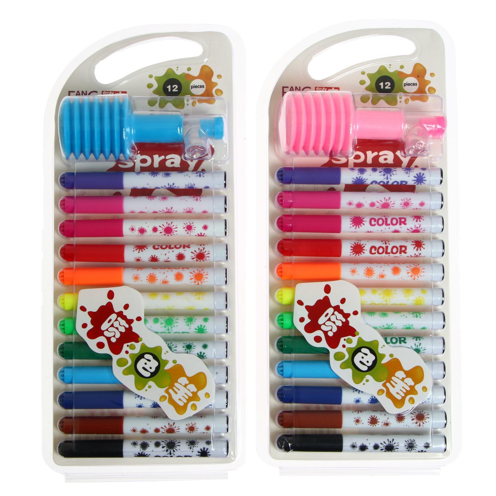 Фломастеры 12цв. BLOWPENS с трафаретами МИКС – необычные фломастеры. В наборе также прилагается груша и трафареты.