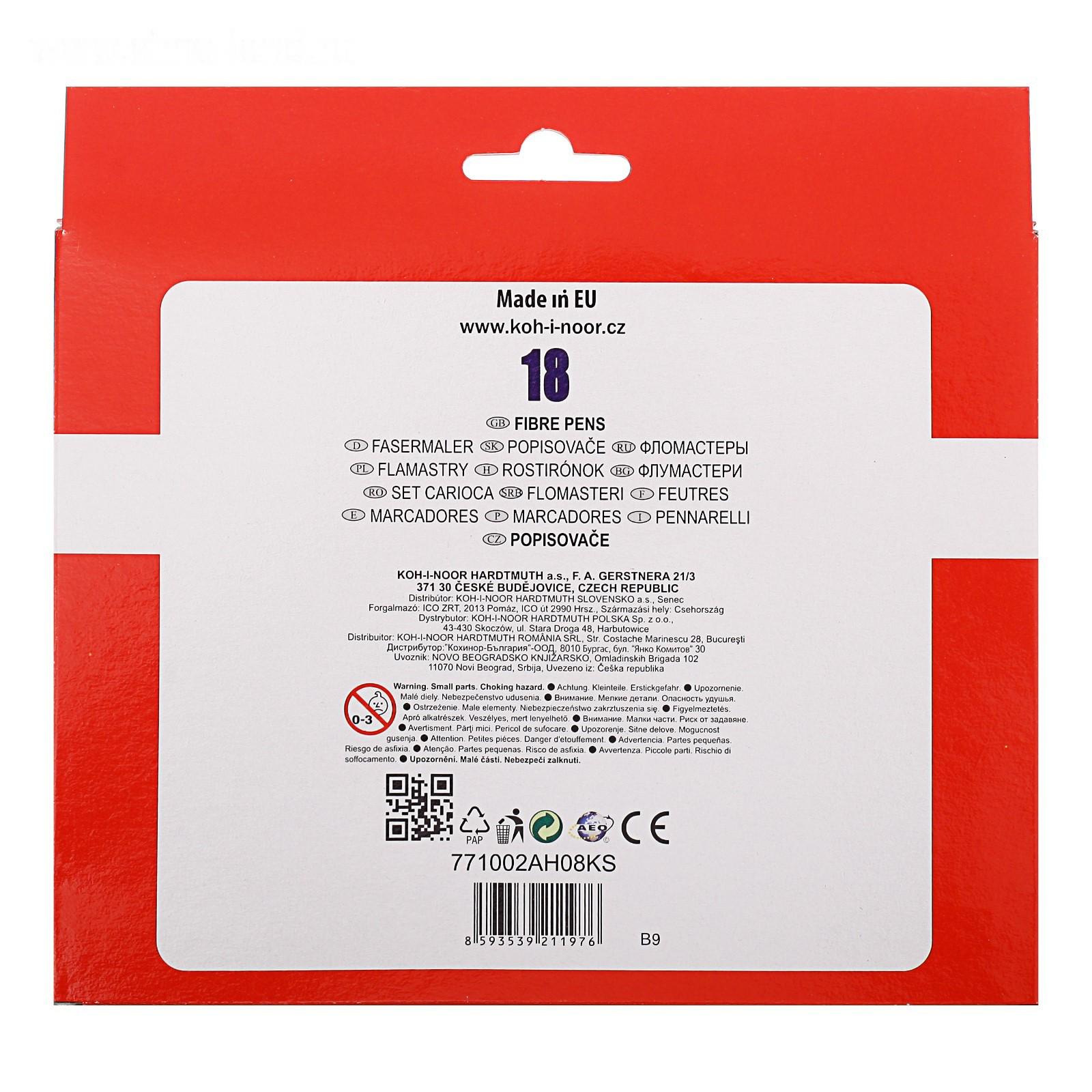 Фломастеры 18 цветов Koh-I-Noor 1002/18 смываемые, трёхгранные, картонная упаковка, европодвес