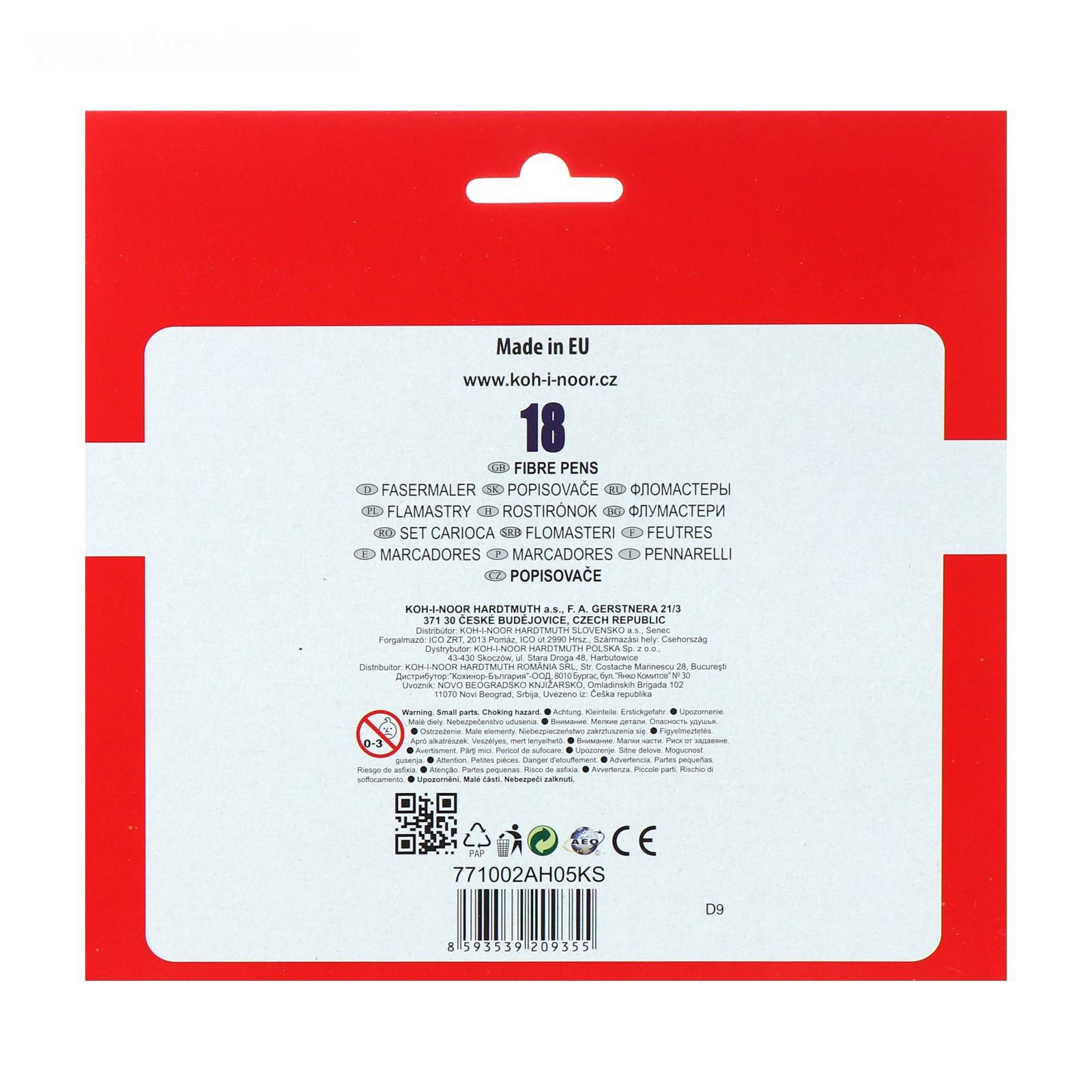 Фломастеры 18 цветов Koh-I-Noor 7710/18 Рыбки, смываемые, трёхгранные, картонная упаковка, европодвес