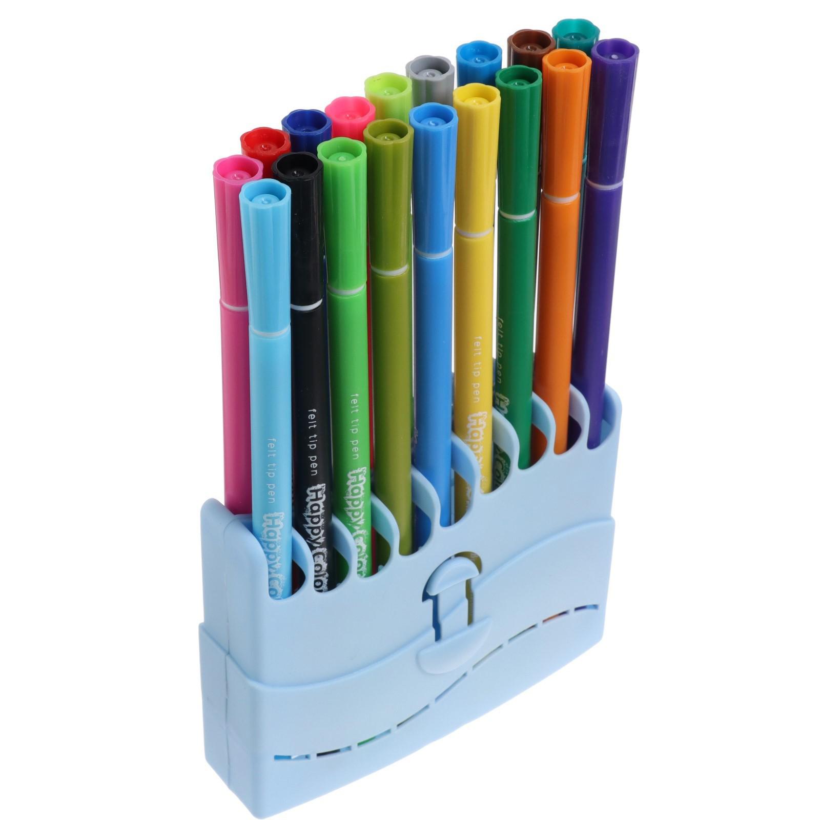 Фломастеры 18 цветов HappyColor, на водной основе, в пластиковом пенале, МИКС