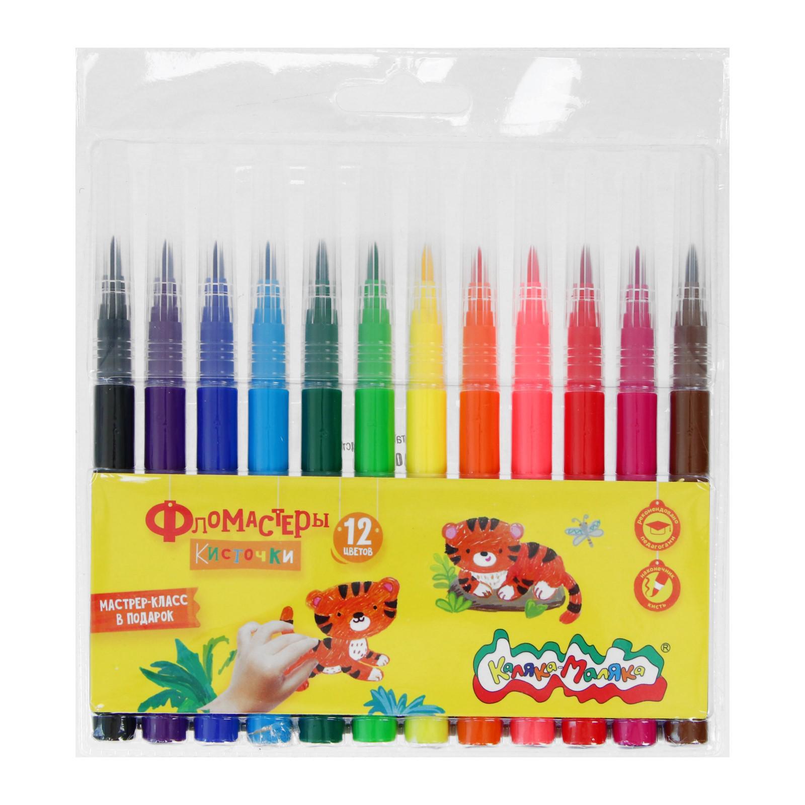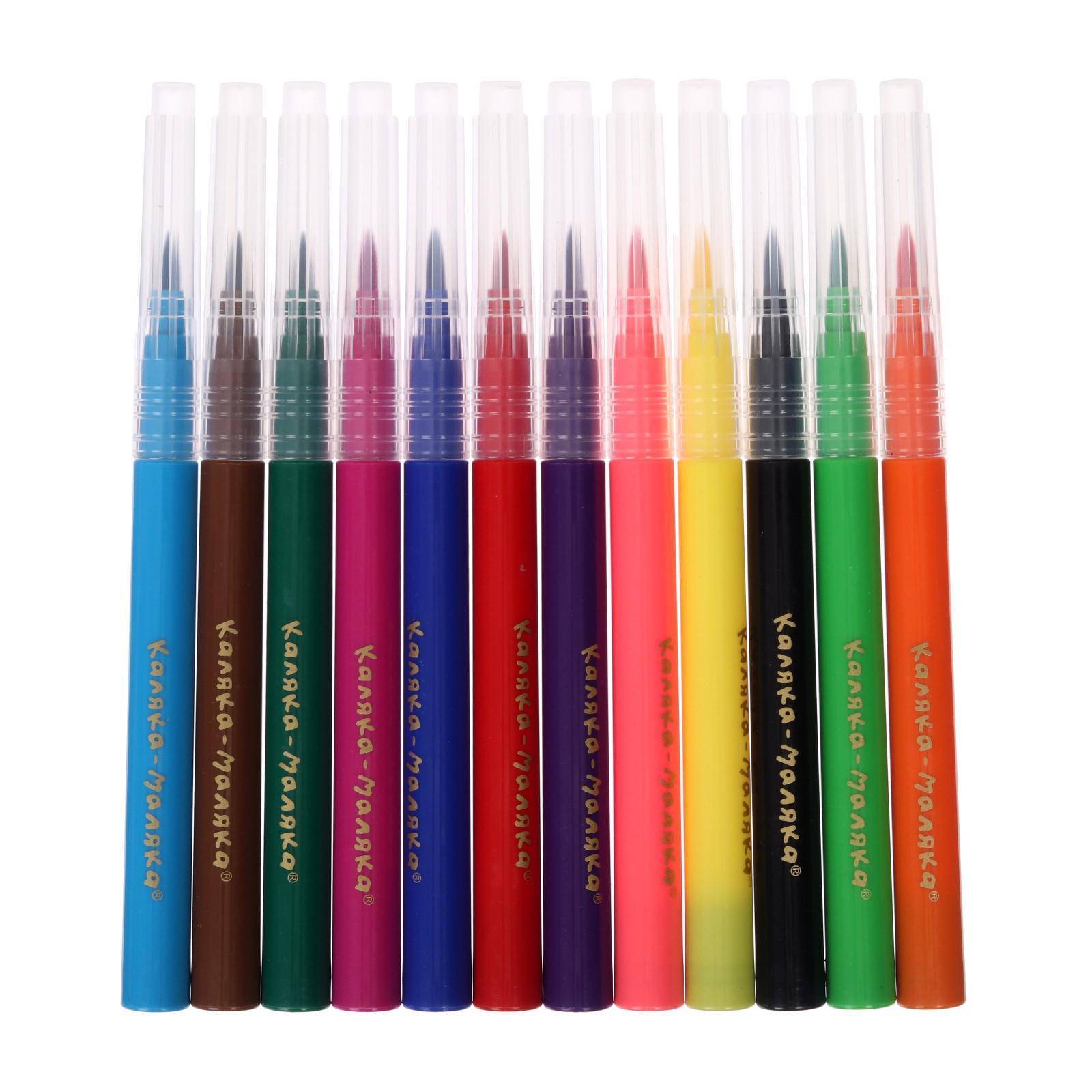 Фломастеры-кисти 12 цветов «Каляка-Маляка», вентилируемый колпачок