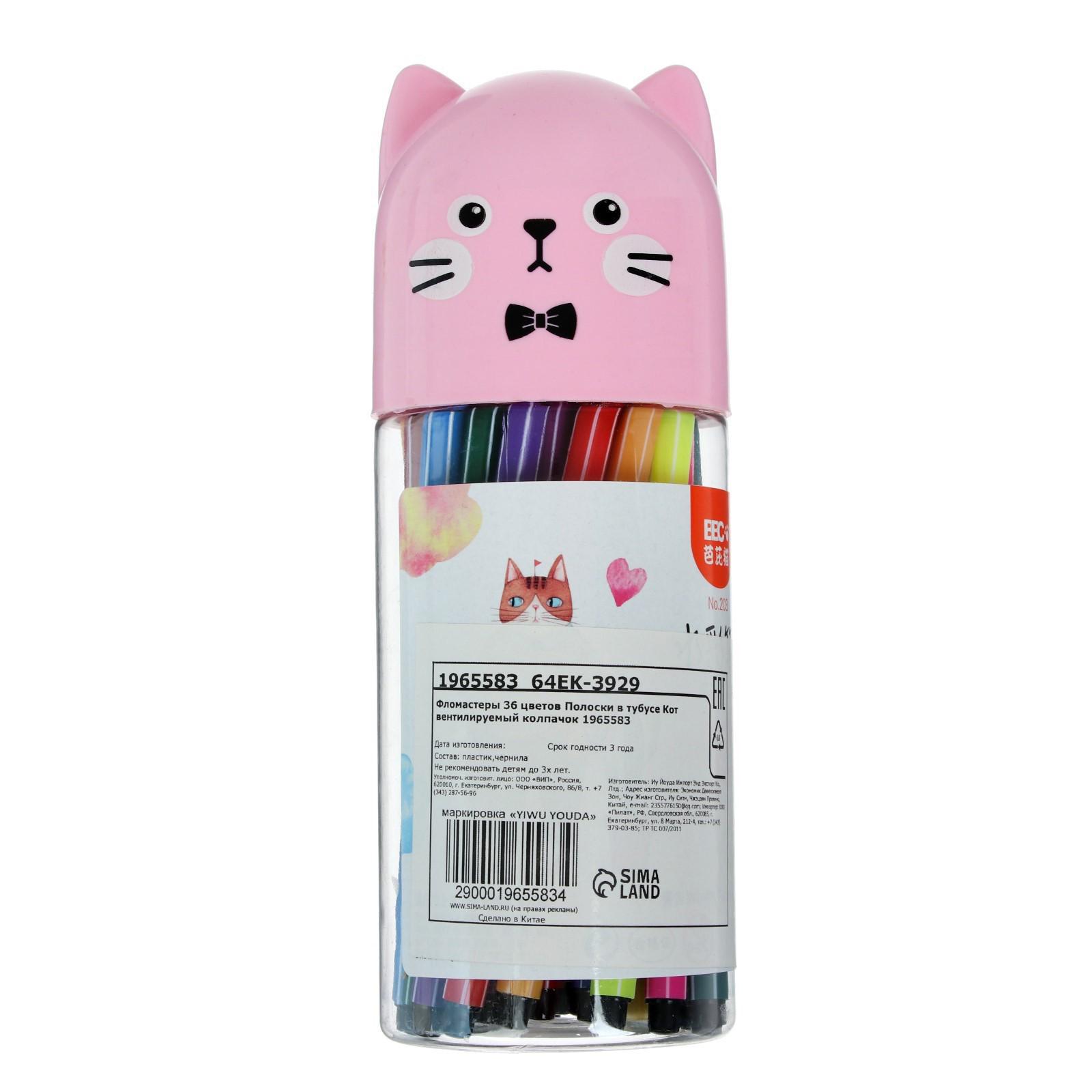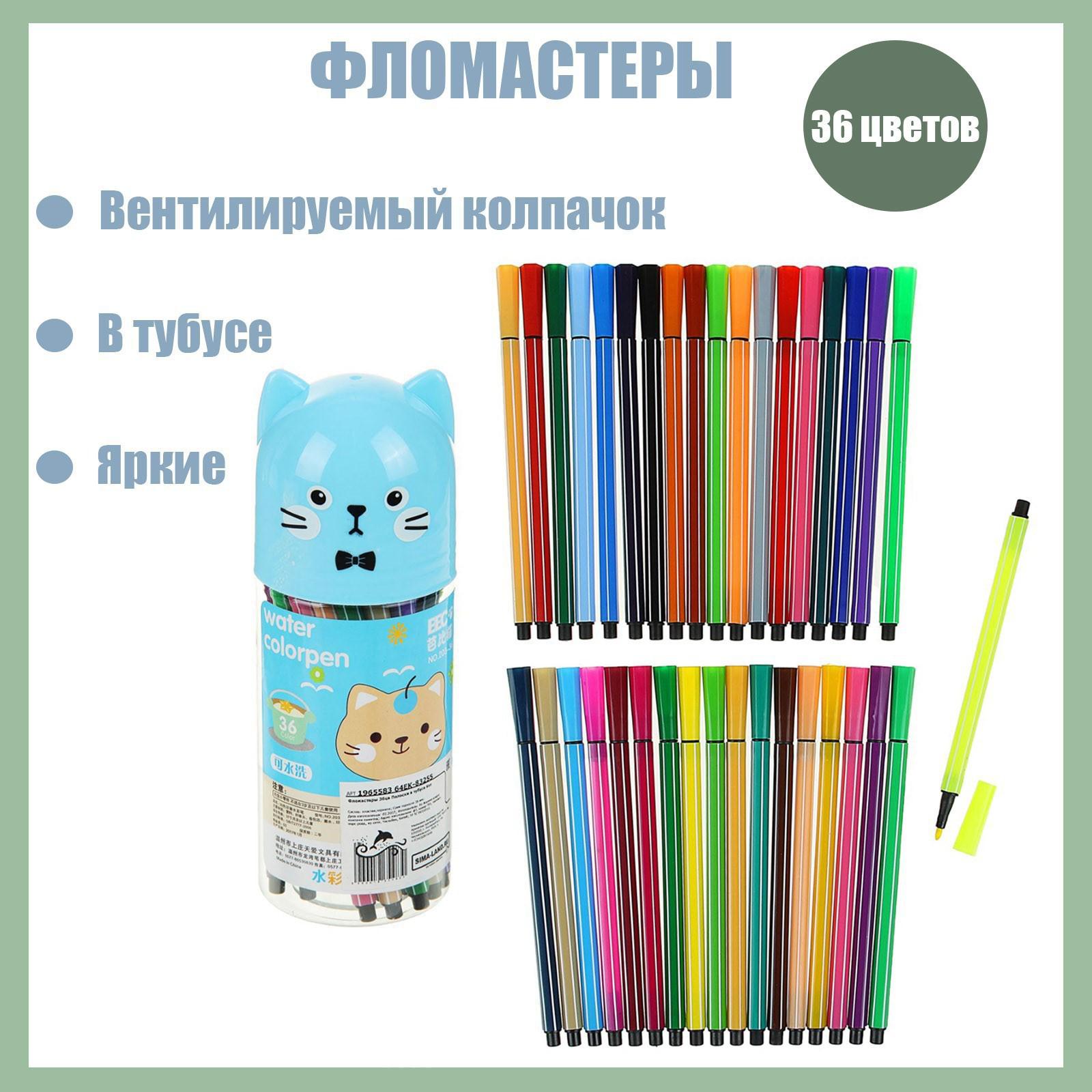 Фломастеры 36 цветов я "Кот", в тубусе, вентилируемый колпачок