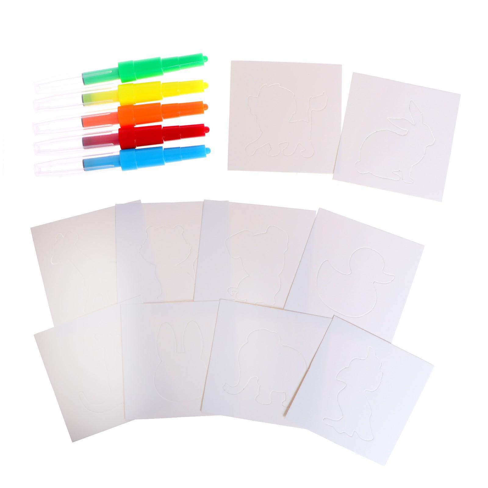 В наборе: 7 трафаретов, 5 фломастеров-выдувашек.