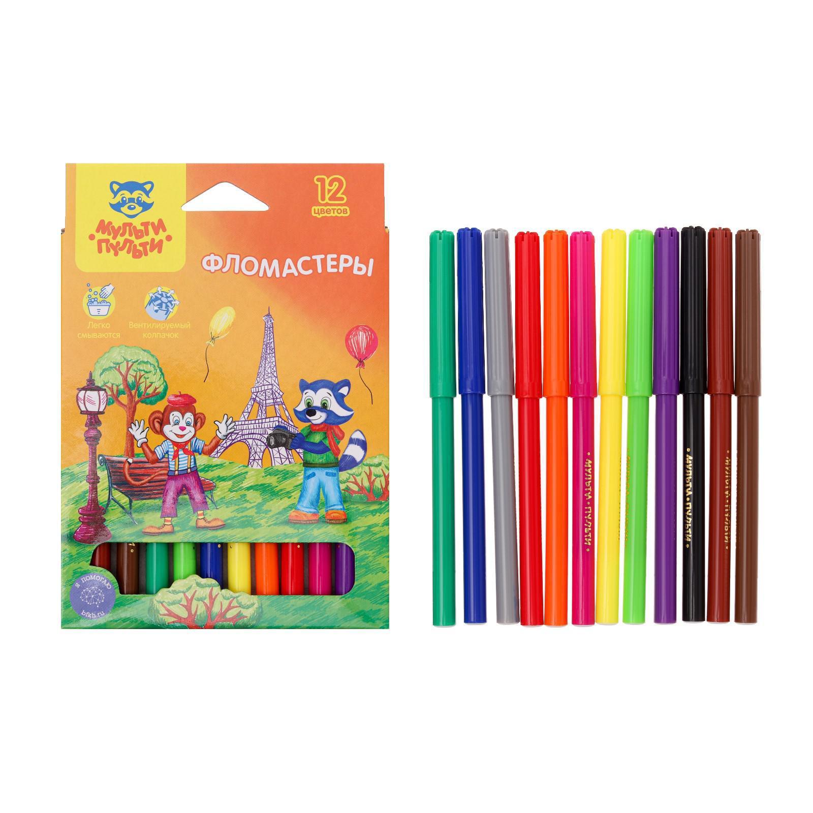 Фломастеры 12 цветов Мульти-Пульти «Енот во Франции», смываемые