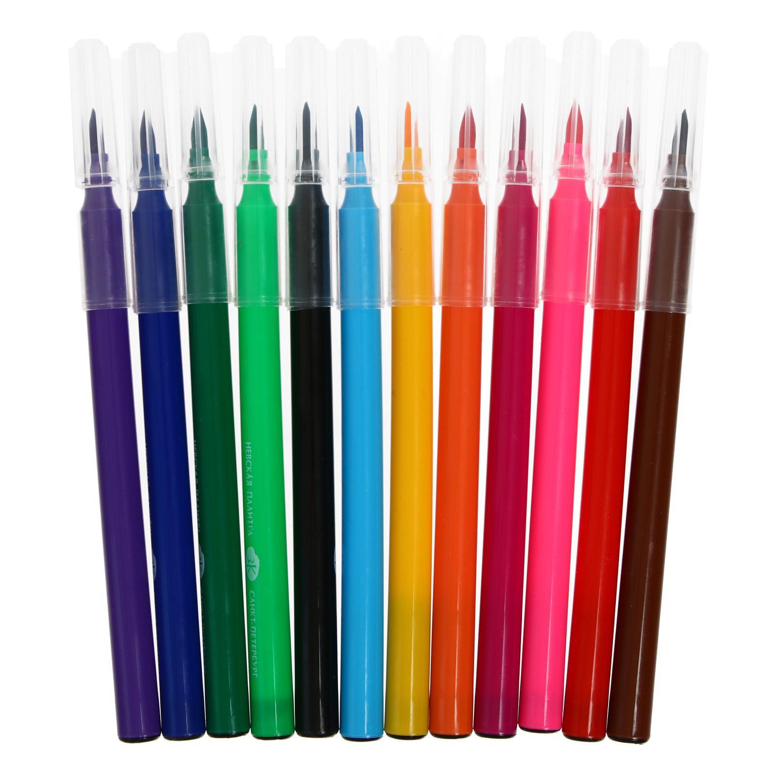 Фломастеры "Цветик" предназначены для рисования на бумаге. Отличаются яркими и насыщенными цветами. Дают легкое и плавное письмо. Фломастеры-кисточки отличаются мягким кончиком, при рисовании позволяющим имитировать рисунок кистью. Можно варьировать толщину линии при нажатии, и рисовать боковой частью стержня. Все фломастеры имеют вентилируемые колпачки. Заправлены смываемыми чернилами на водной основе.