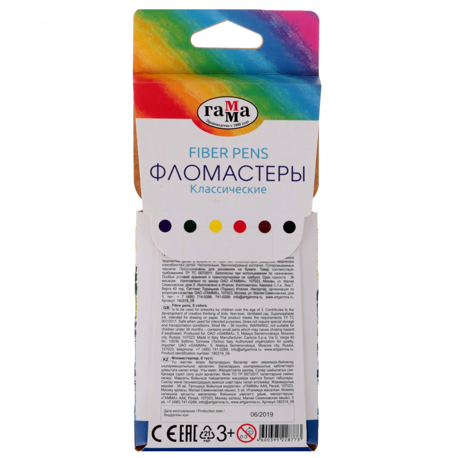 Фломастеры 6 цветов, «Гамма» «Классические»