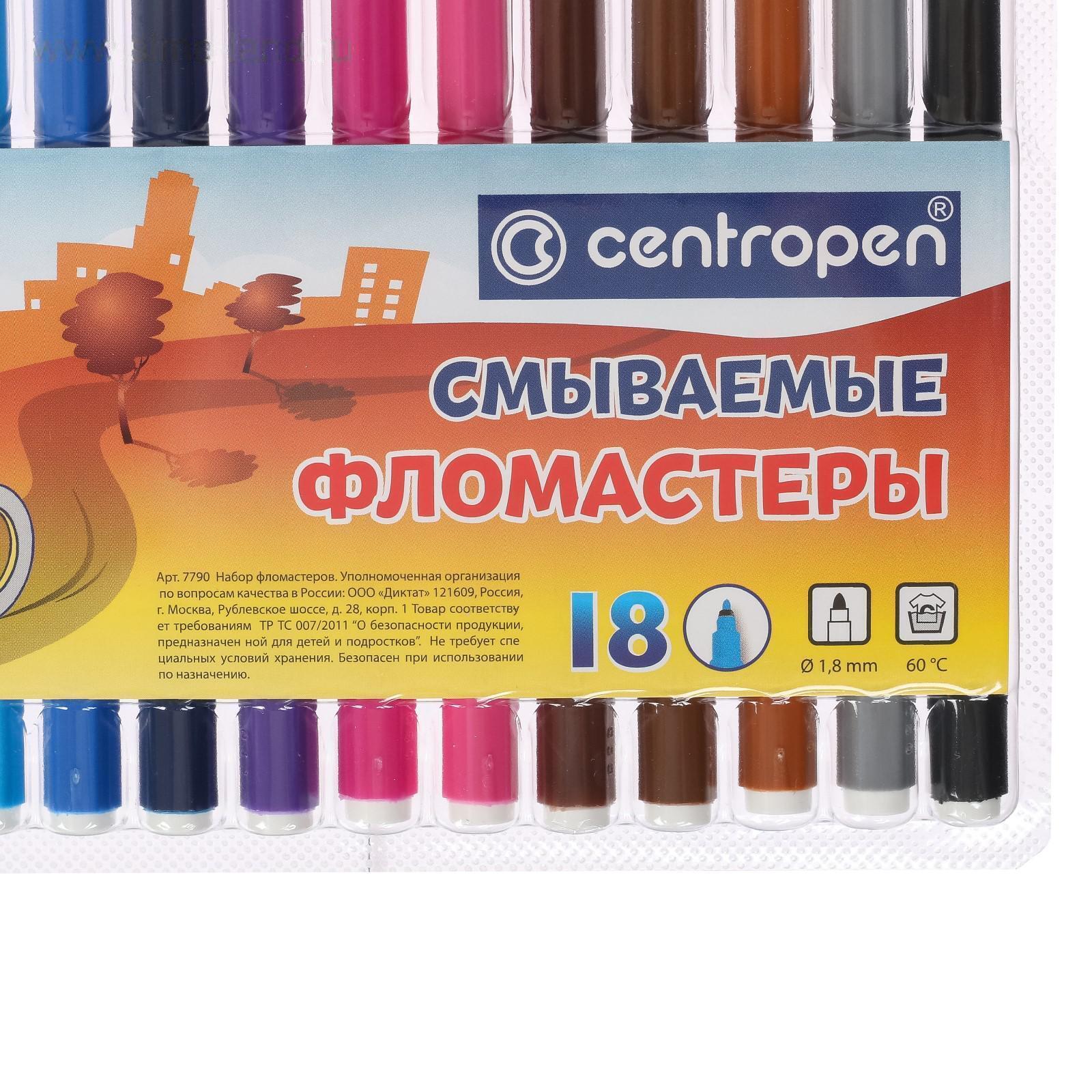 Фломастеры 18 цветов 1.8 мм Centropen 7790 Washable, смываемые, европодвес, линия 1.0 мм