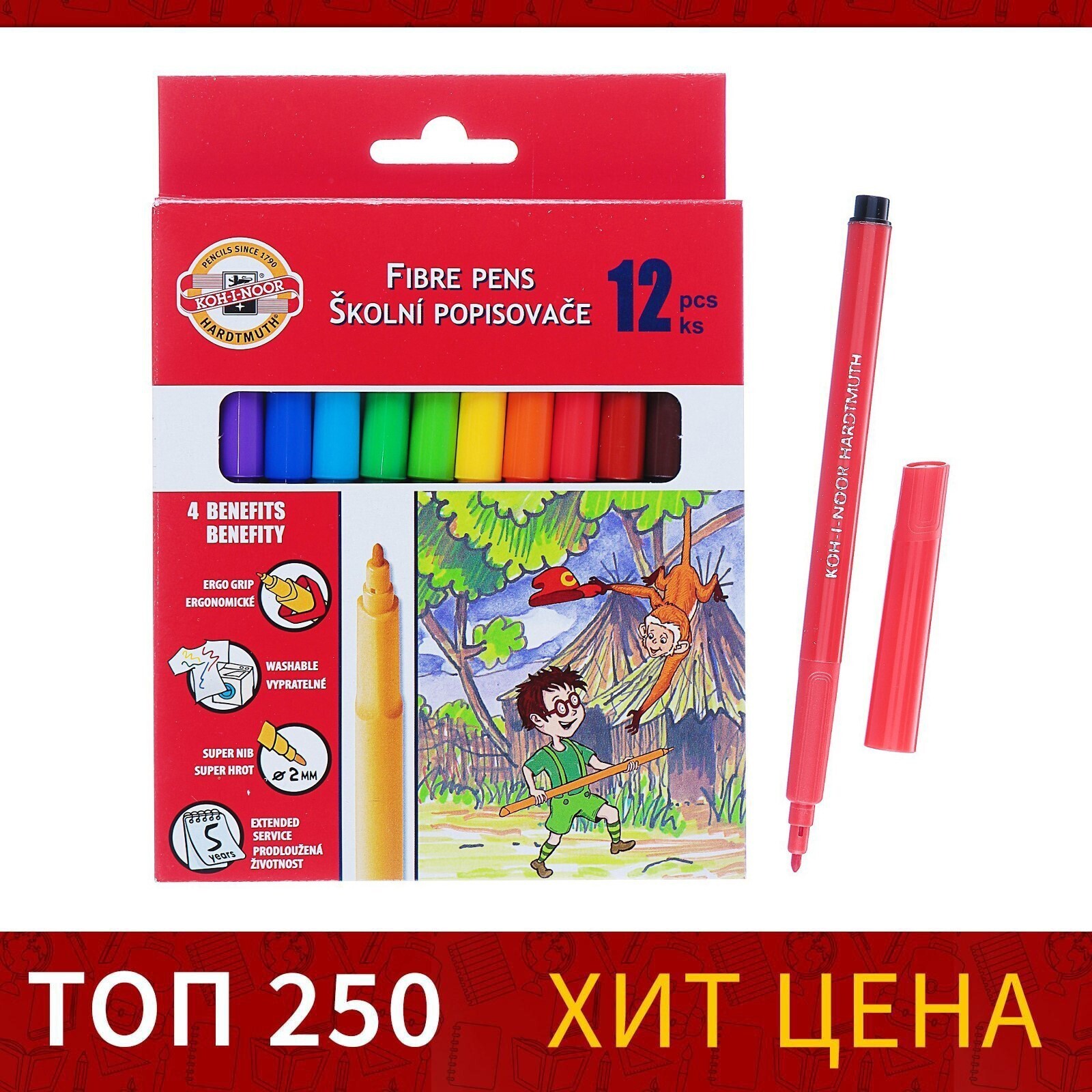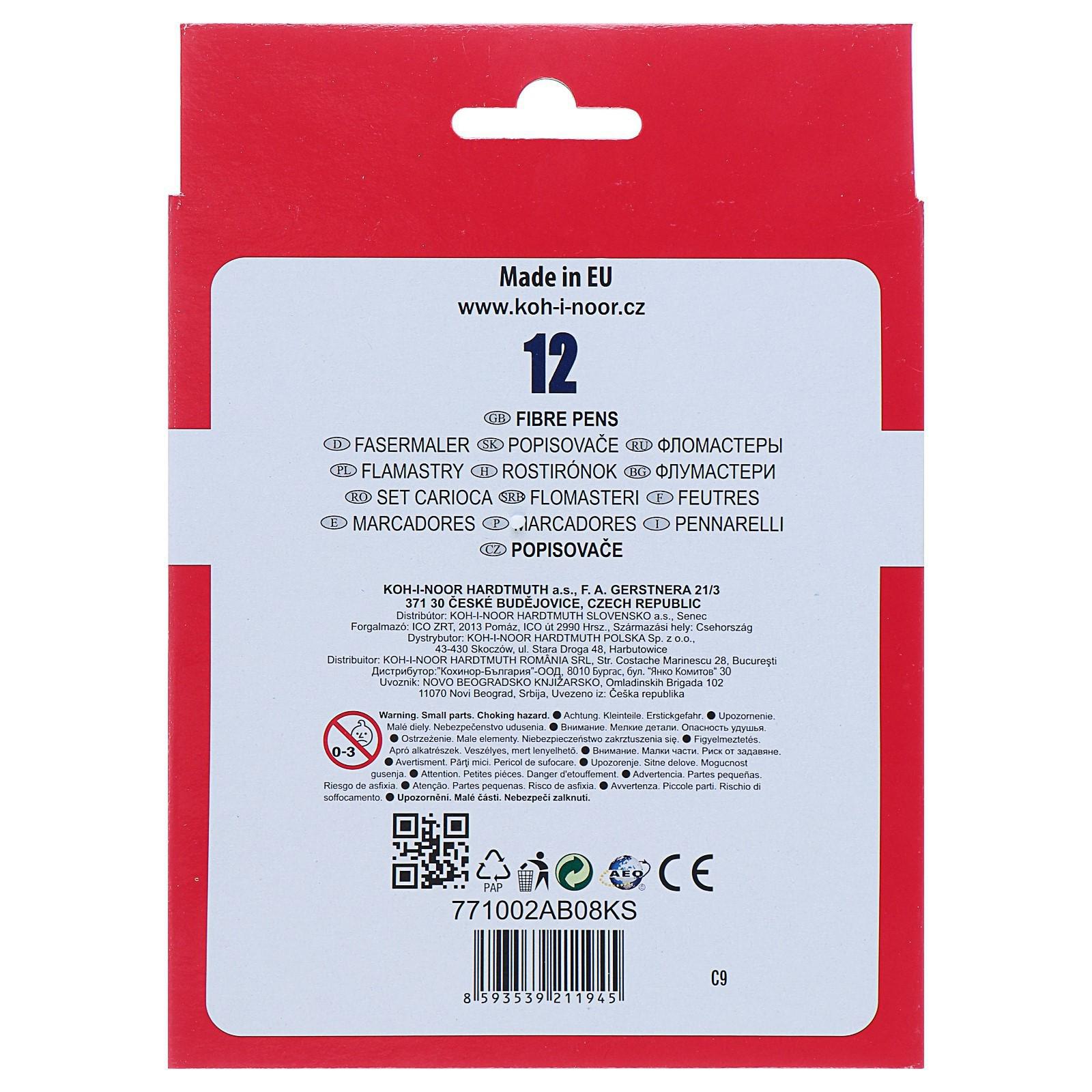 Фломастеры 12 цветов Koh-I-Noor 1002/12 смываемые, трёхгранные, картонная упаковка, европодвес