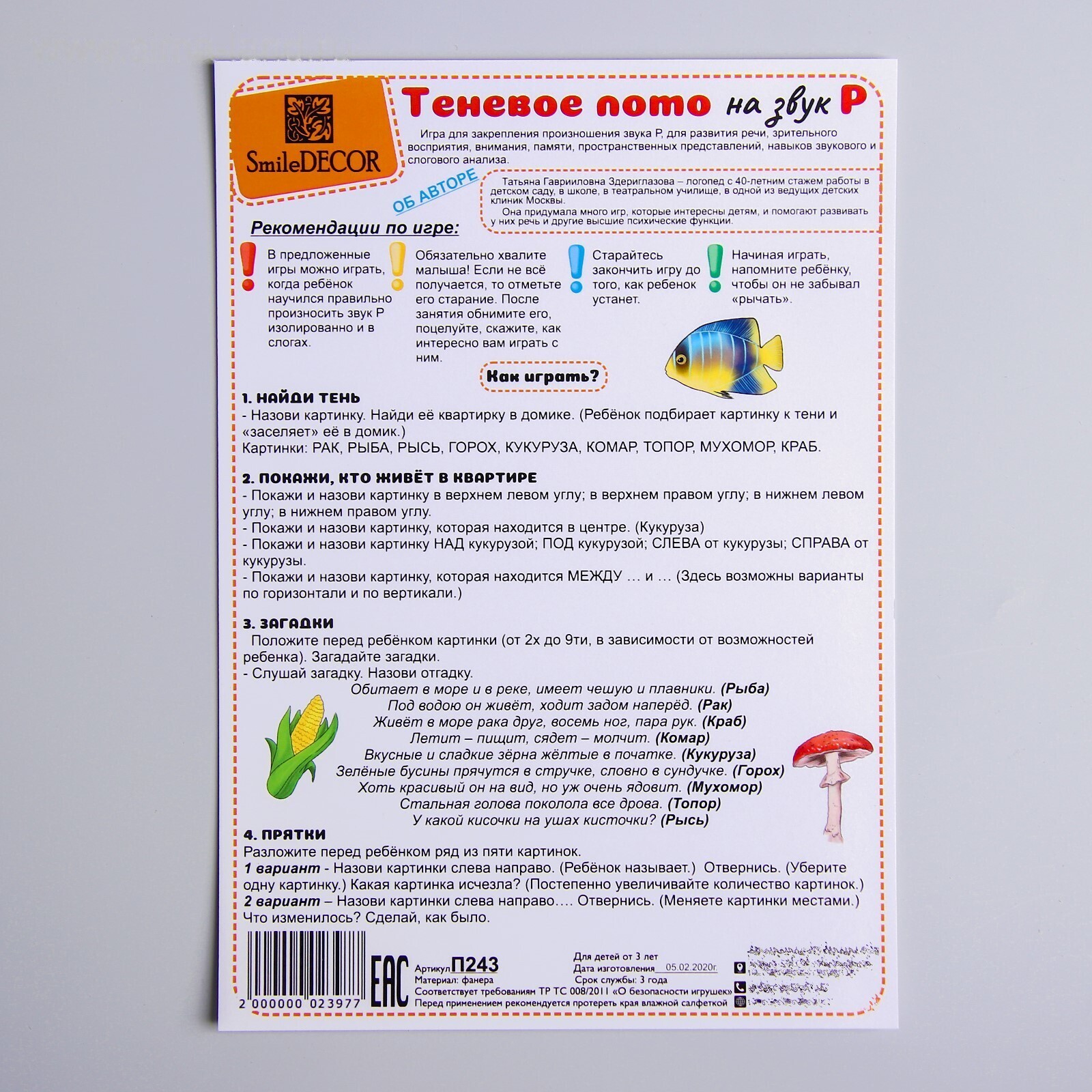 Теневое лото — это игра для закрепления произношения звуков, развития речи, зрительного восприятия, внимания, памяти, пространственных представлений, навыков звукового и слогового анализа.