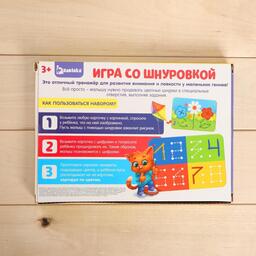 Шнуровка «Весёлые задания» рекомендована детям старше 3 лет. Занятия с изделием развивают мелкую моторику, воображение, логику, творческие способности, память.