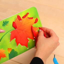 Игра со шнуровкой способствует развитию ловкости и внимания у маленьких гениев! Малыш с большим интересом продевает шнурки в отверстия, выполняя задания на ярких карточках с цветными картинками.
