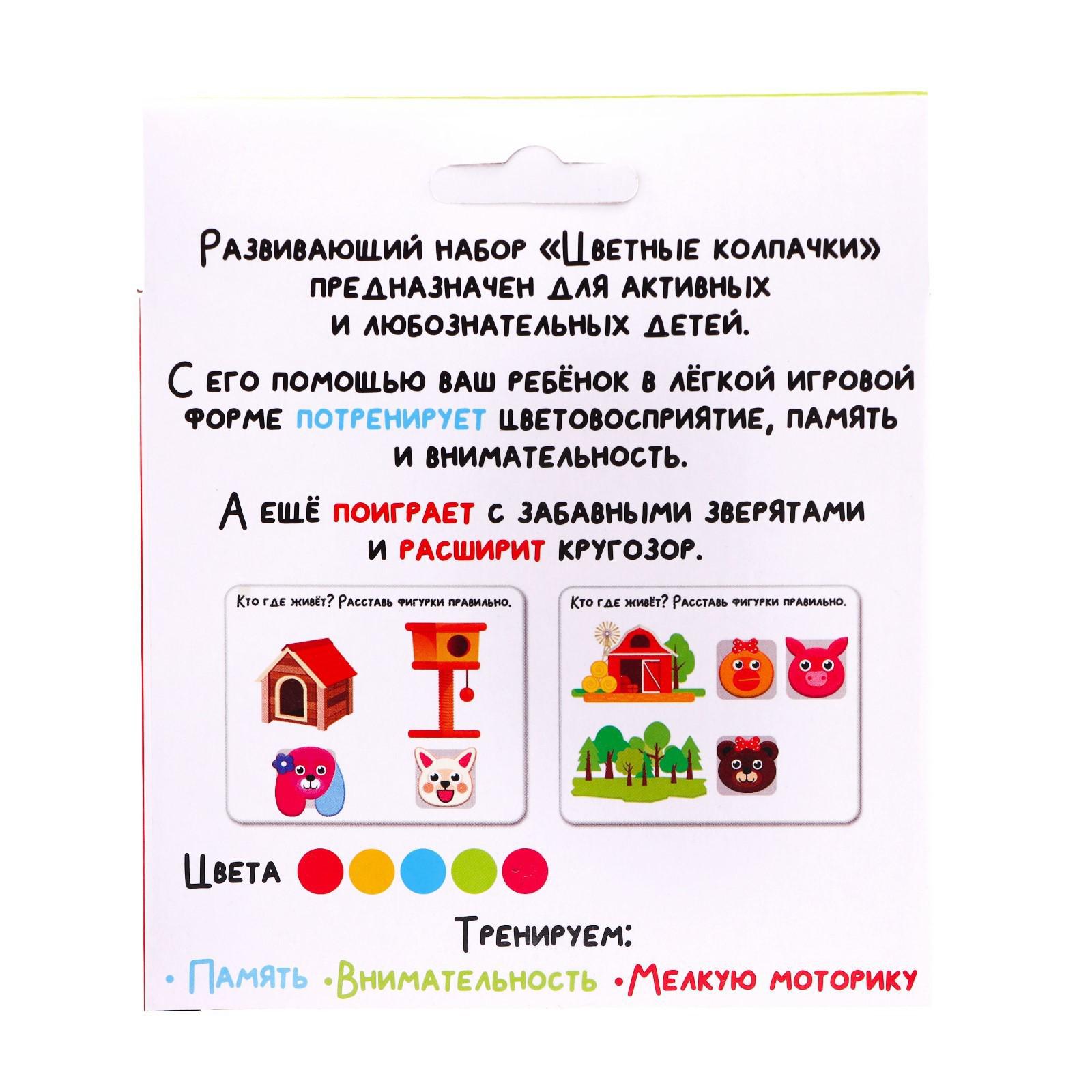 Выстройте вместе с ребёнком логический ряд из колпачков и попросите его продолжить. Ряд можно выстроить по количеству колпачков, а также по фигуркам зверят (их количеству, цветам).