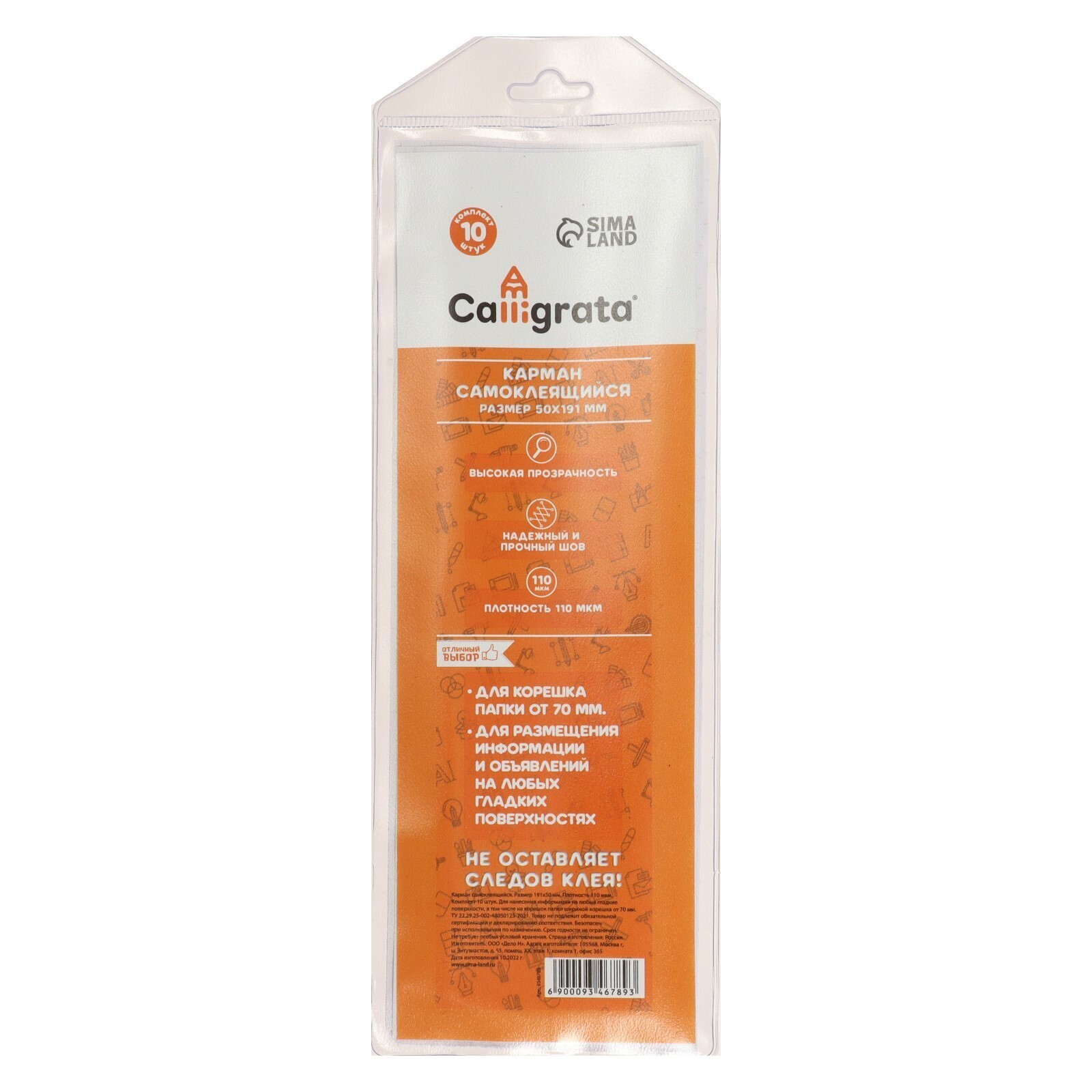 Карманы самоклеящиеся, комплект 10 штук, Calligrata, 191 х 50 мм, 110 мкм, на корешок папки шириной 70 мм и любые гладкие поверхности