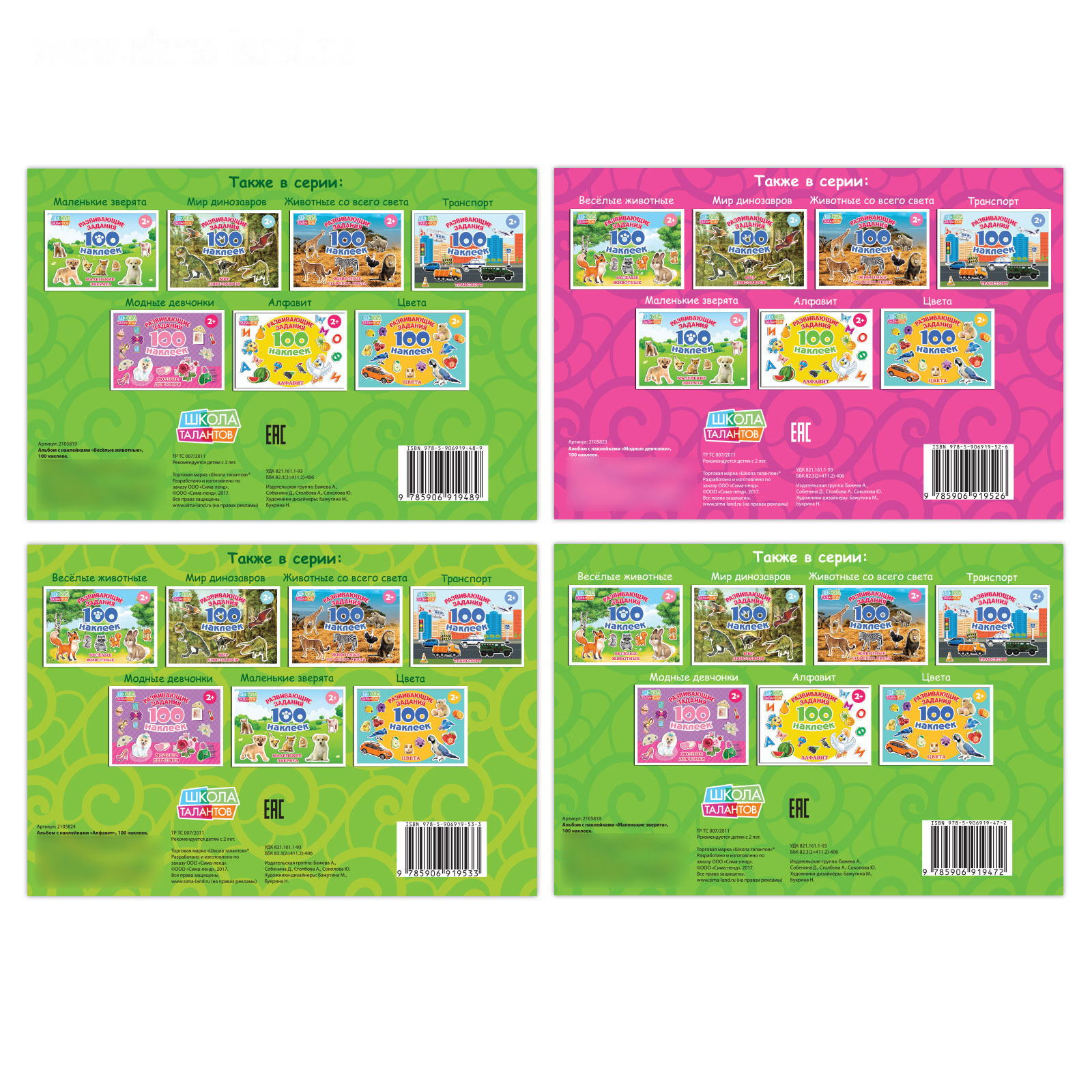В каждом альбоме представлено 100 наклеек с красочными изображениями животных, растений, букв, фруктов, овощей и других важных предметов окружающего мира. Яркие картинки положительно влияют на визуальное восприятие малыша, память и воображение.