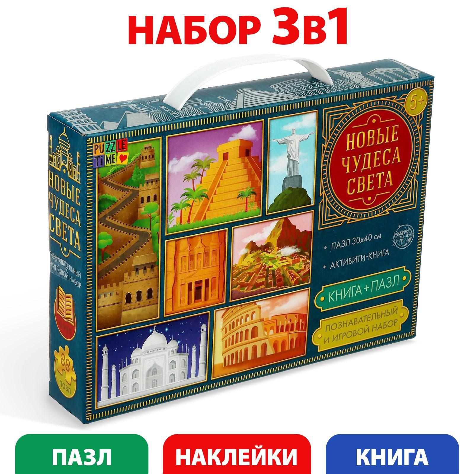 Познавательный и игровой набор «Новые чудеса света», книга и пазл, 88 элементов
