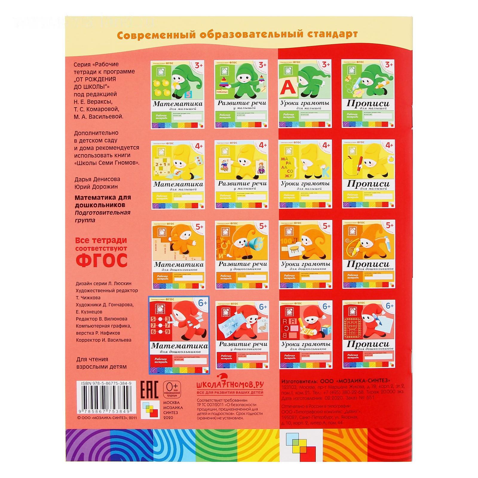 Набор рабочих тетрадей: математика, развитие речи, прописи, уроки грамоты. Подготовительная группа 6+