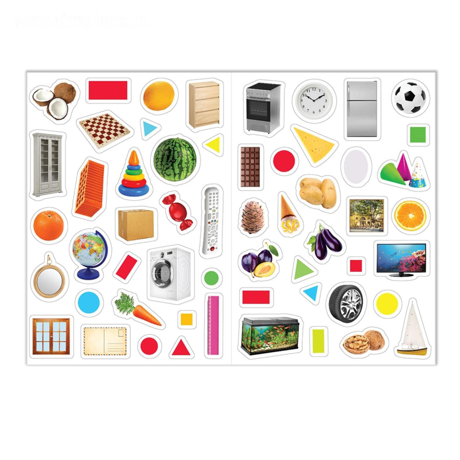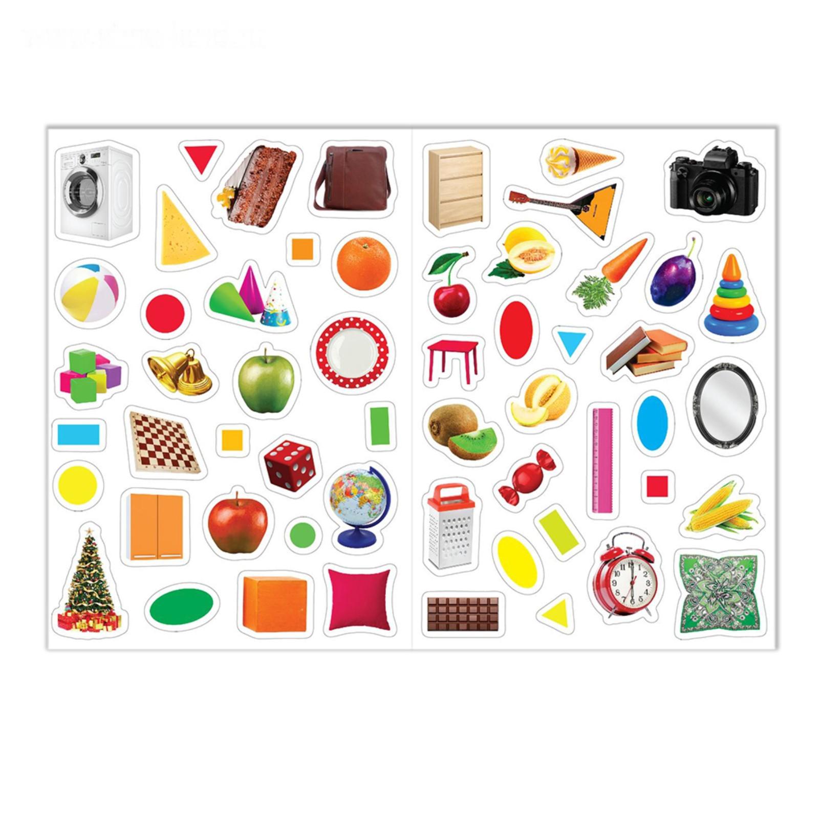 С набором наклеек «Обучаемся играя» познавать окружающий мир будет легко и интересно. Малыш познакомится с геометрическими формами, основными цветами и узнает, как называются окружающие предметы.