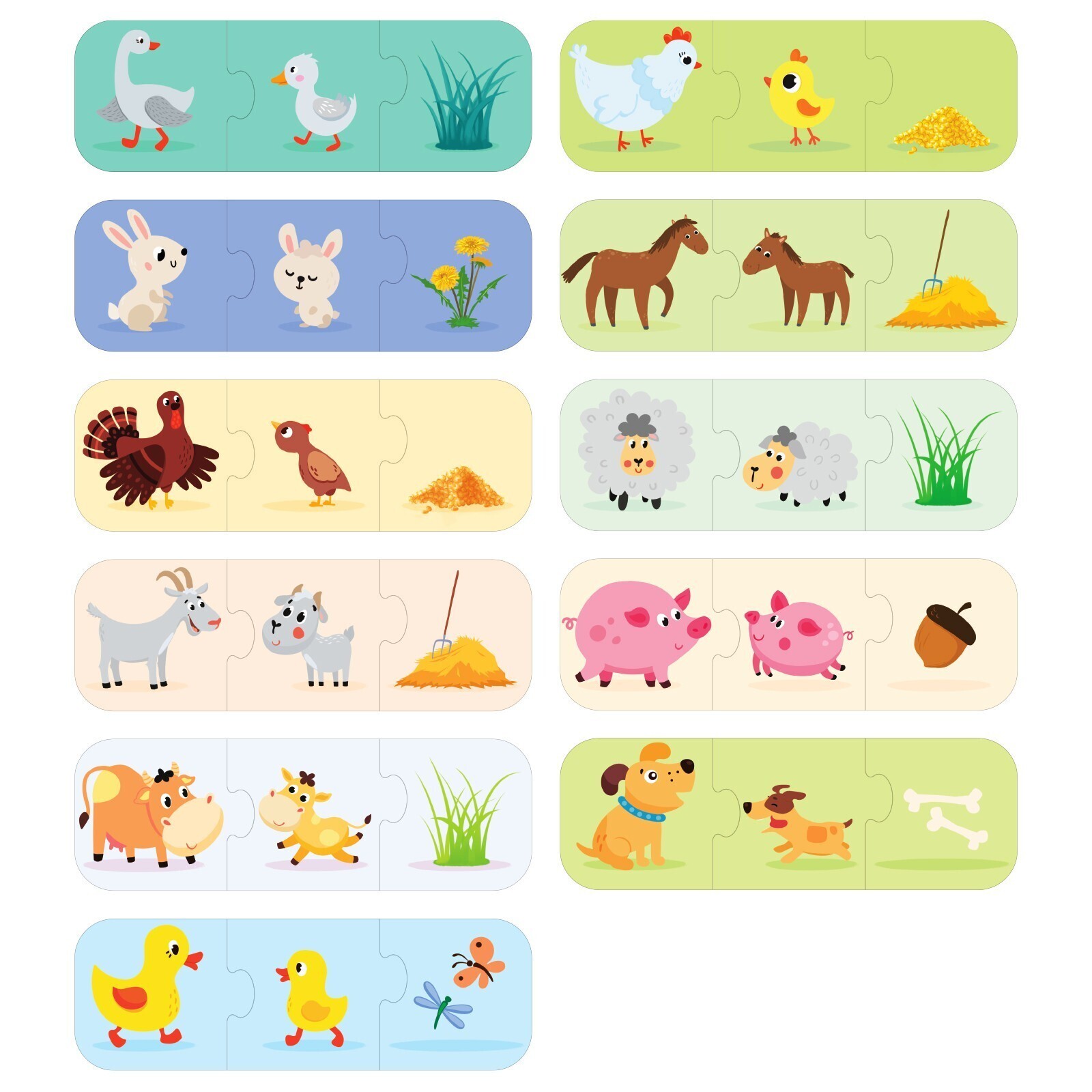 Набор 3 в 1 «Моя ферма»: 11 пазлов-цепочек, книга с наклейками, раскраска