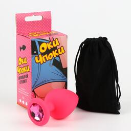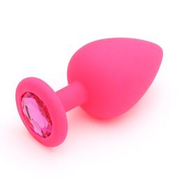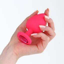 Анальная пробка, силиконовая, с розовым кристаллом, розовая, D = 44 мм, h = 94 мм