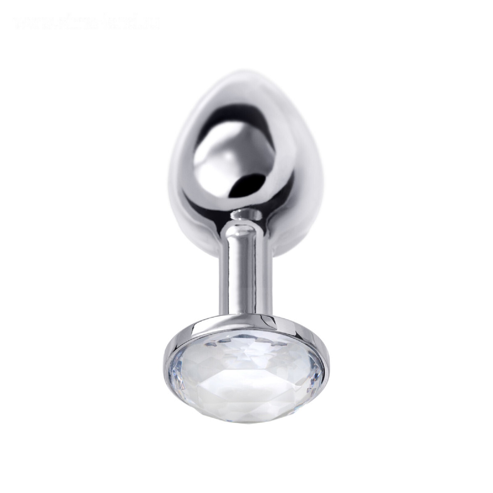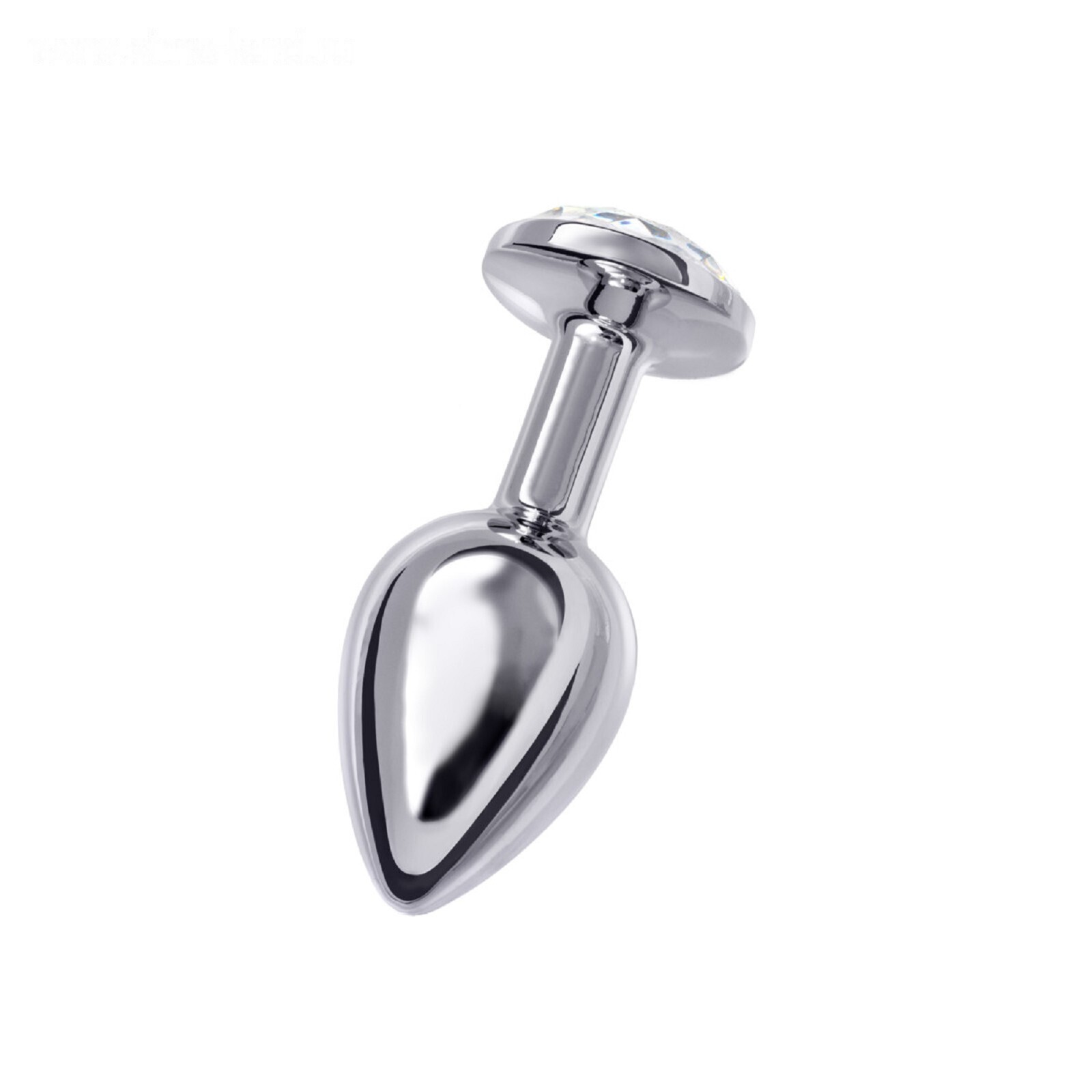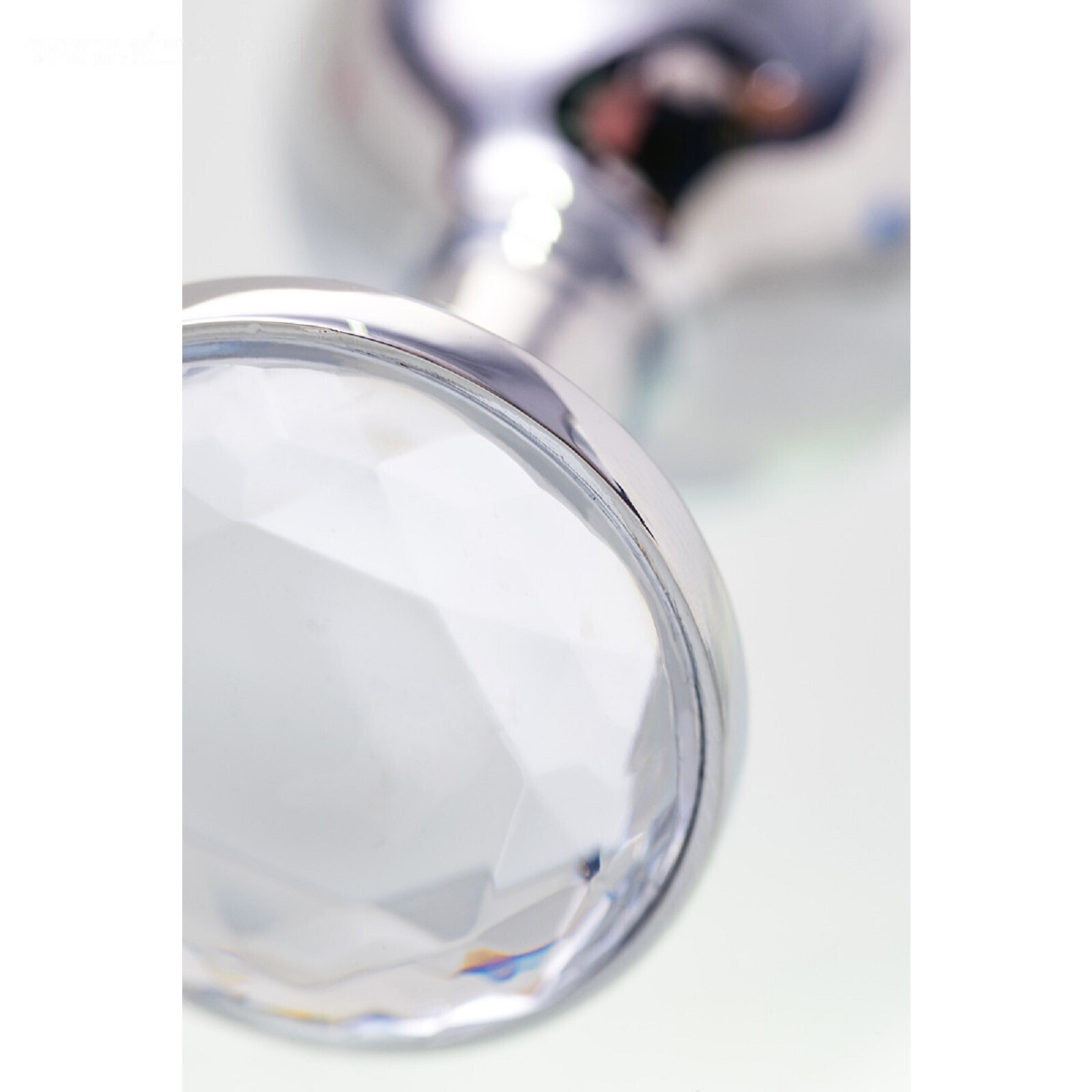 Анальная пробка Metal by Toyfa, серебристая, с белым кристаллом, 7,5 см, d=3 см