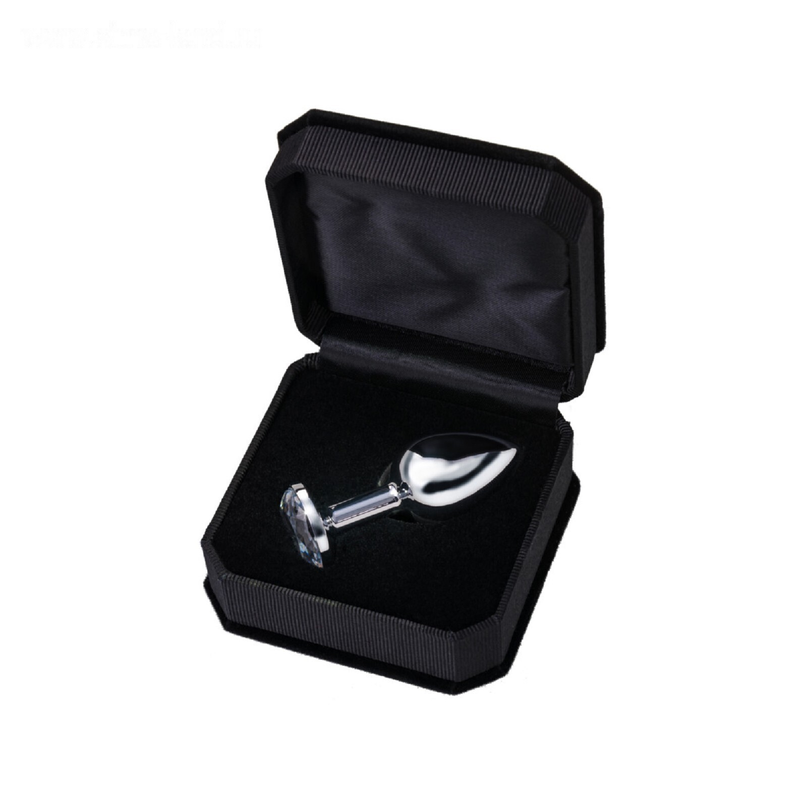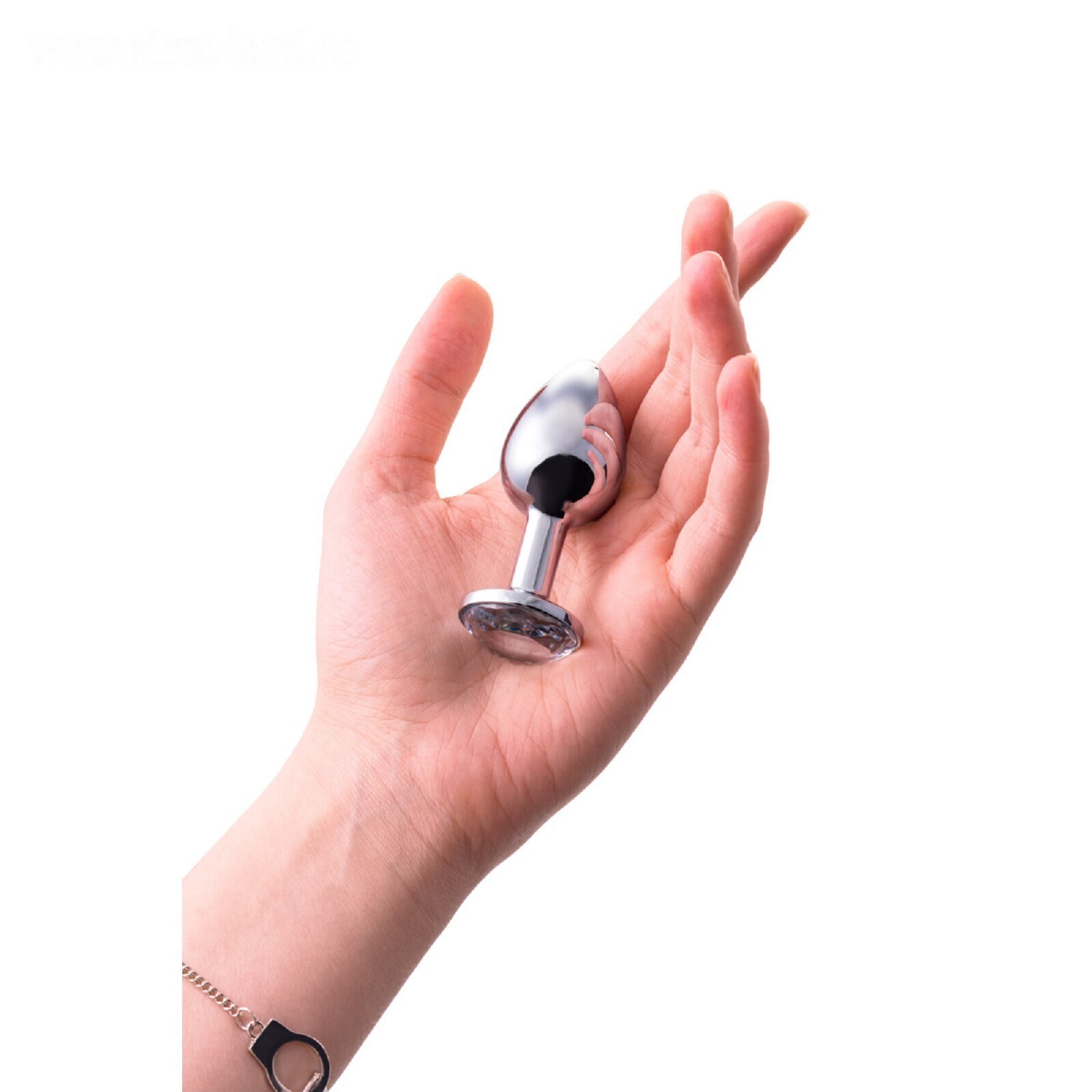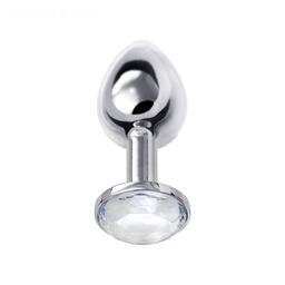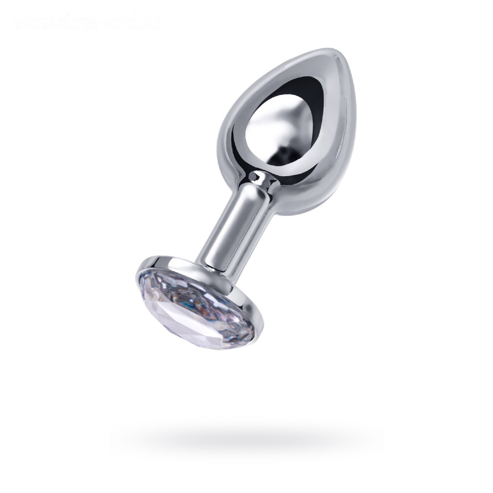 Анальная пробка Metal by Toyfa, серебристая, с белым кристаллом, 7,5 см, d=3 см