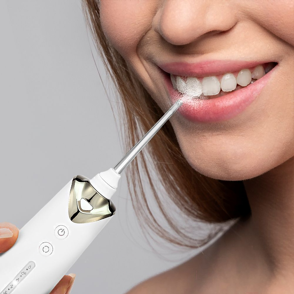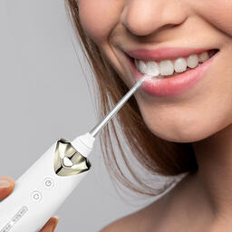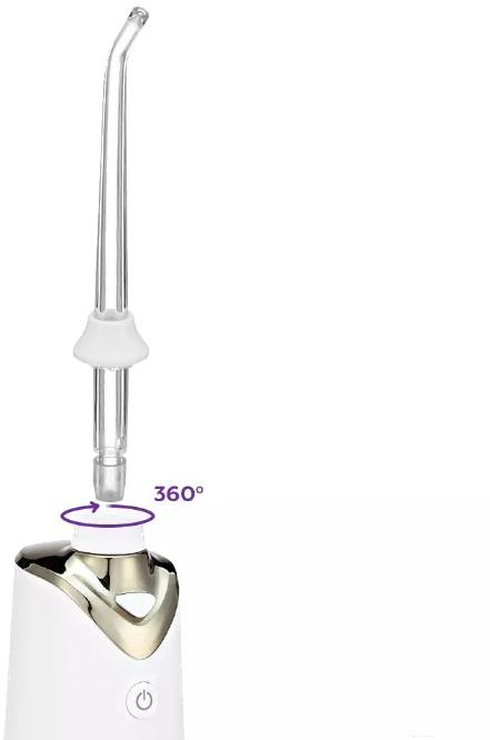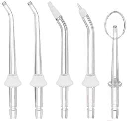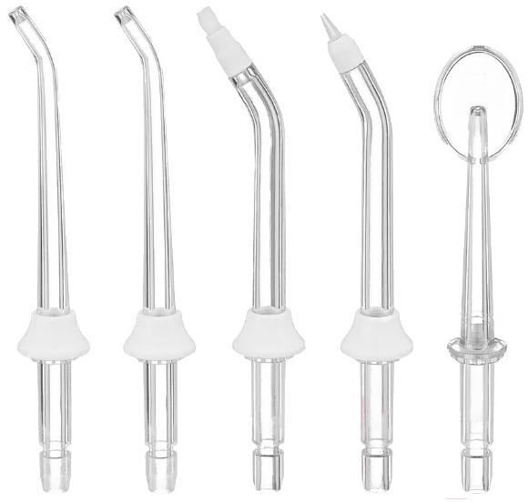 Типы насадокдля чистки языка (1 шт.), для очистки труднодоступных мест (линия десен, 1 шт.), для ирригатора (классические струйные, 2 шт.), для удаления зубного камня (1 шт.), с щеточкой для удаления налета (1 шт.)