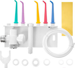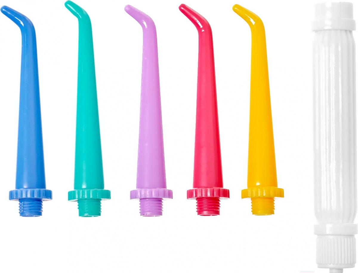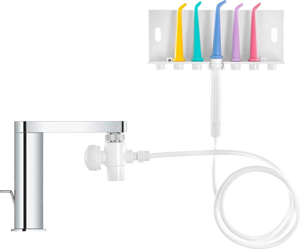 Дополнительная комплектацияподставка (рама для крепления насадок на стену), индивидуальные насадки (5 шт), ручка, соединительная трубка (шланг из ПВХ), переходник (для крана), ключ (пластиковый шестигранный)