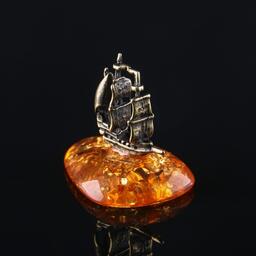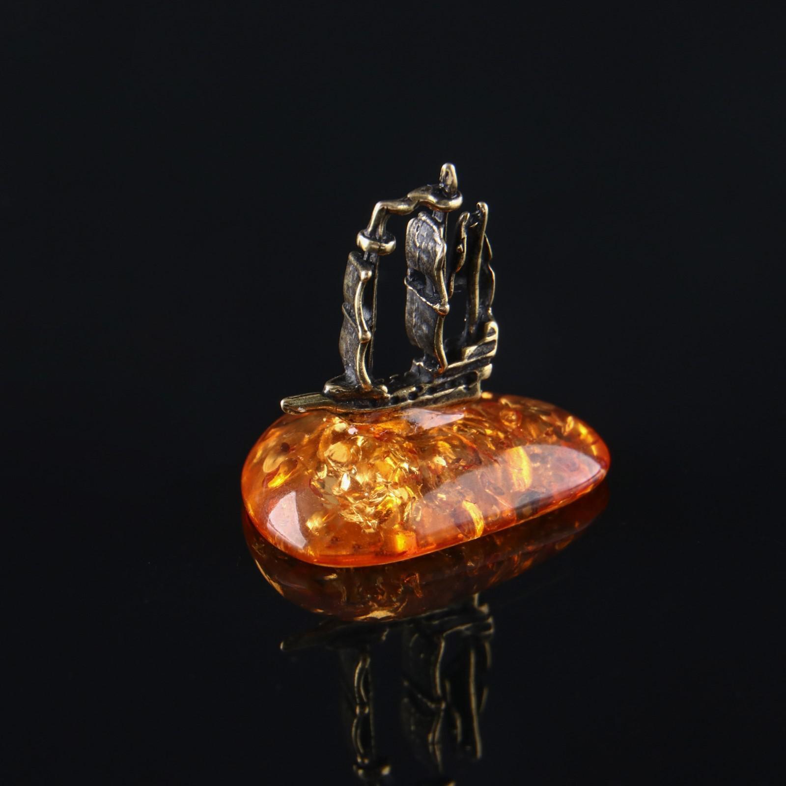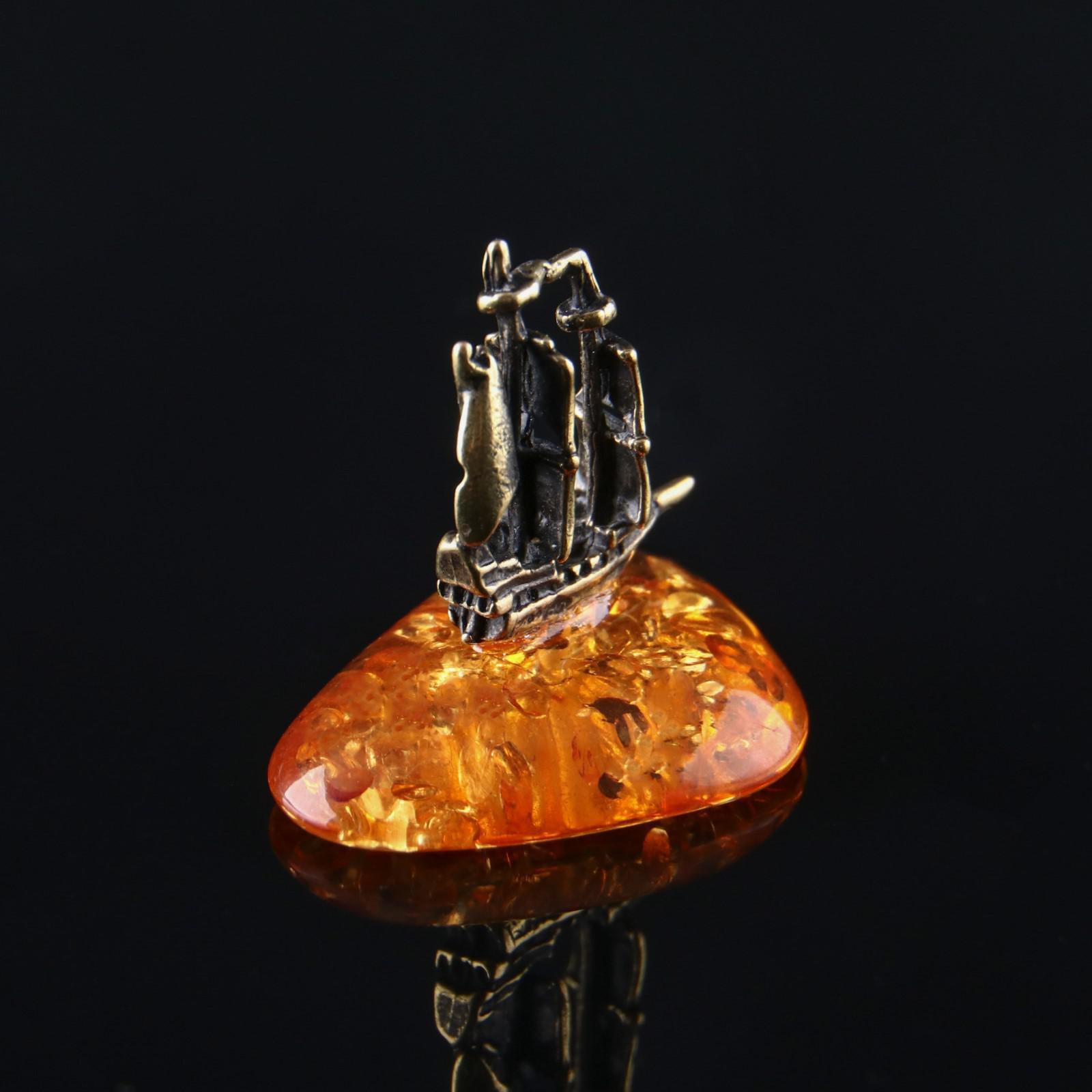 Сувенир "Парусник", латунь, янтарная смола, 1,9х0,6х1,6 см