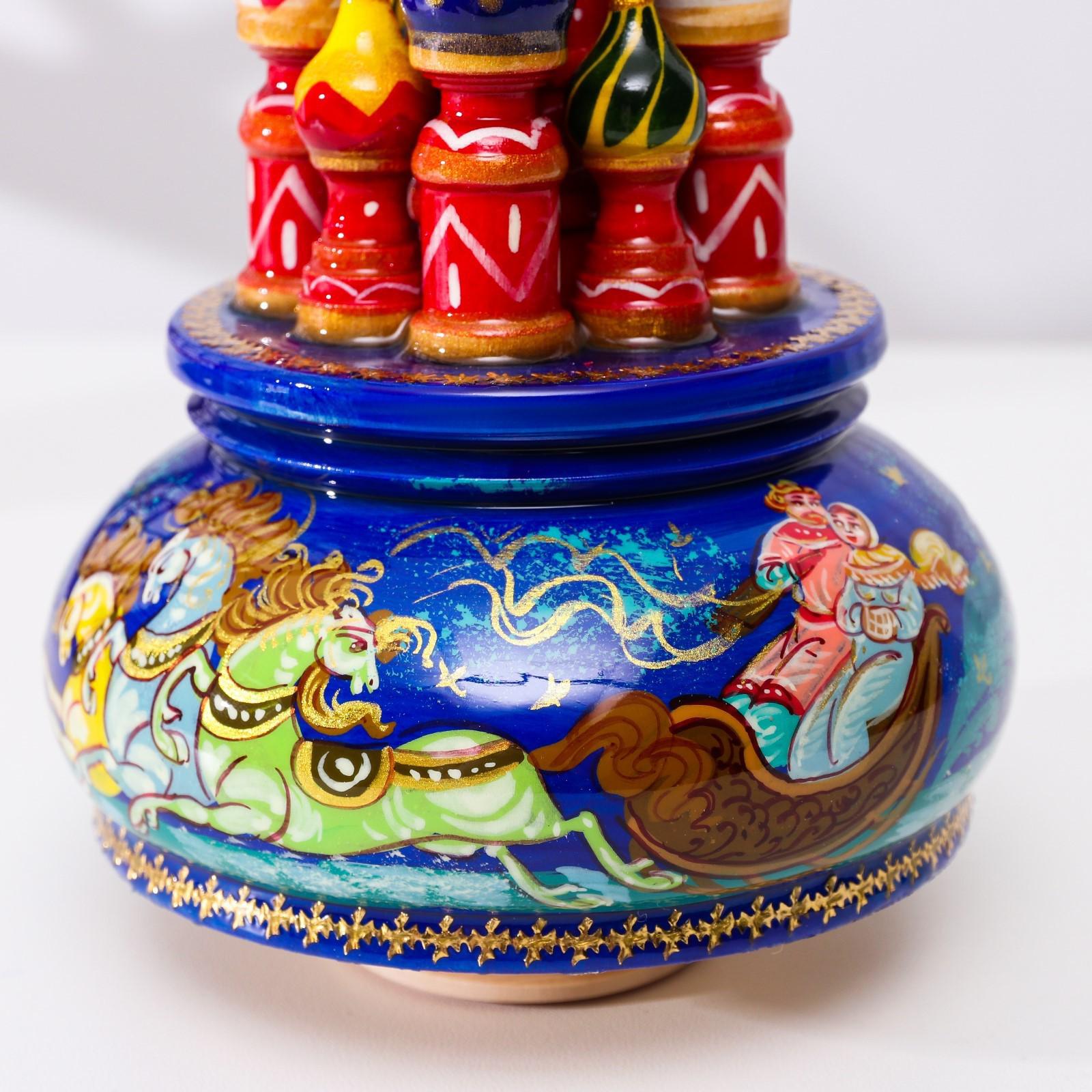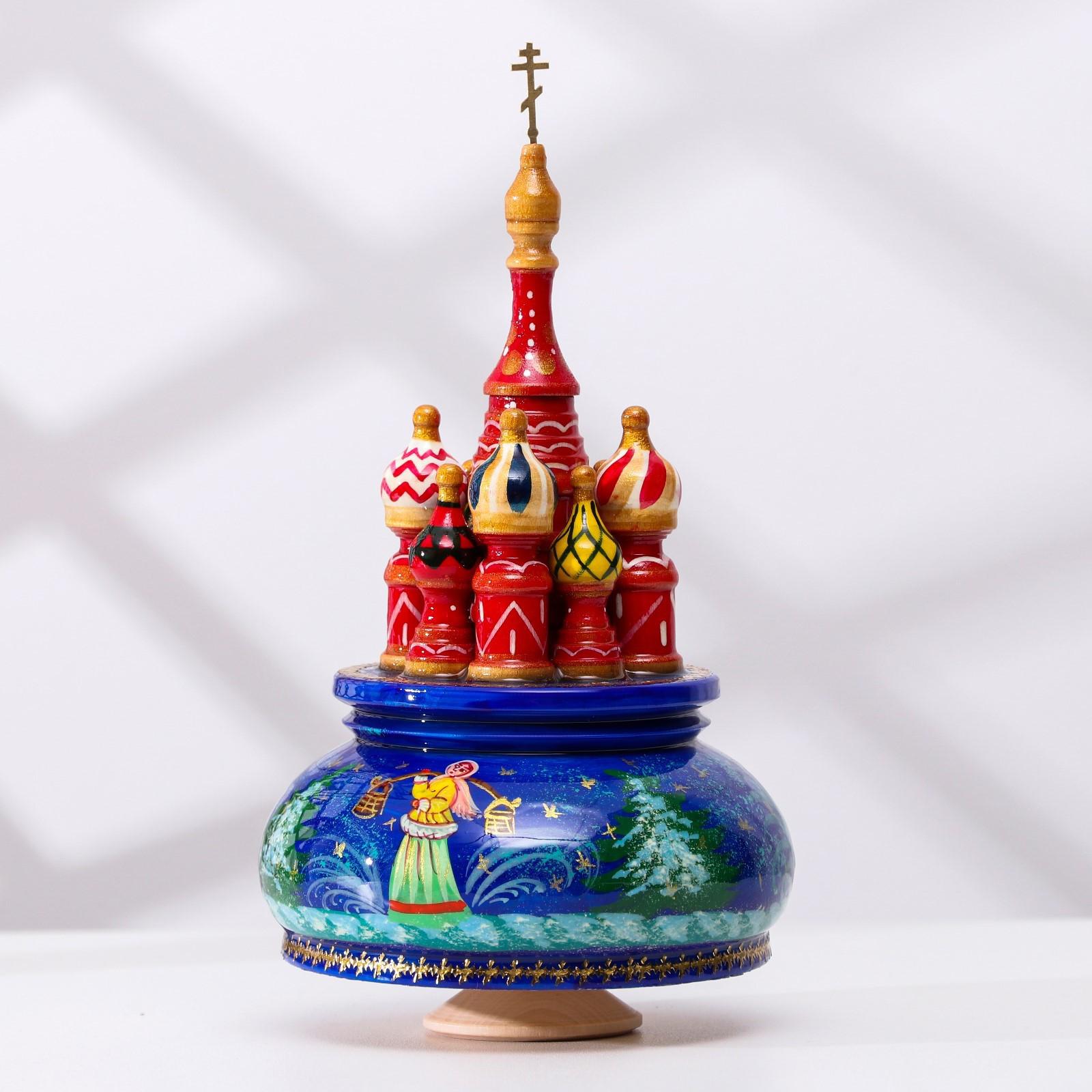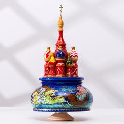 Сувенир музыкальный "Храм", тройка, синий фон, ручная роспись