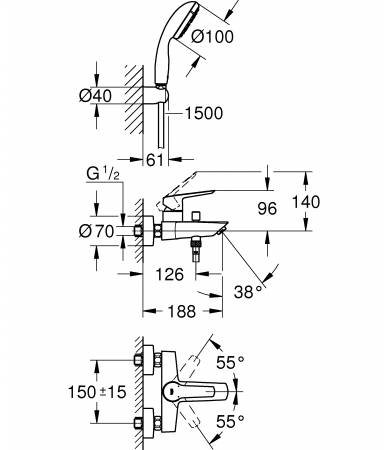 Смеситель для ванны Grohe QuickFix Start 23413002 хром