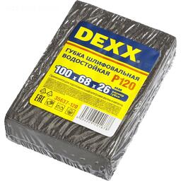 Губка шлифовальная DEXX 35637-120, четырехсторонняя, средняя жесткость, Р120, 100х68х26 мм