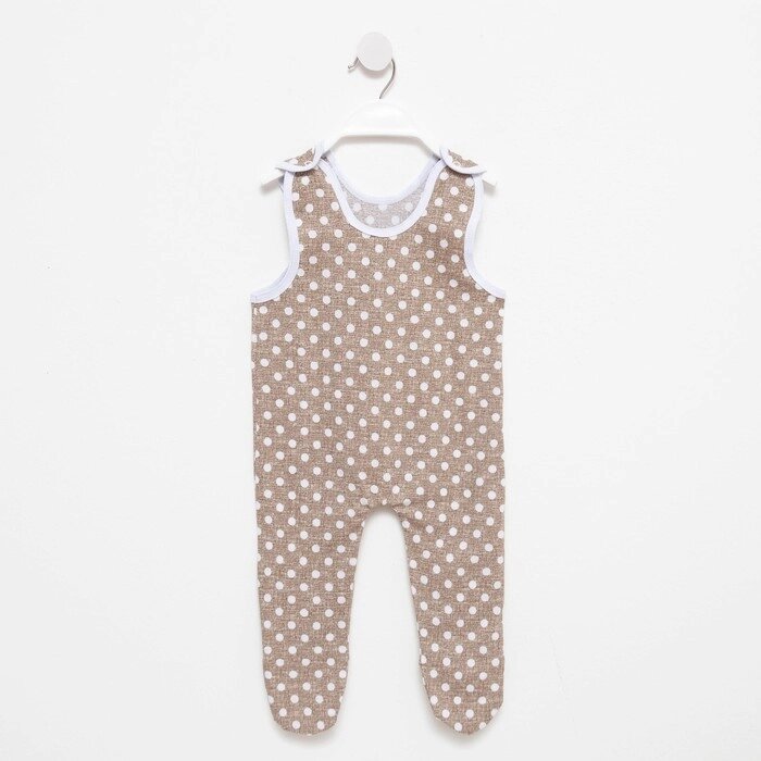 Ползунки длинные детские, цвет бежевый/горох, рост 74 см
