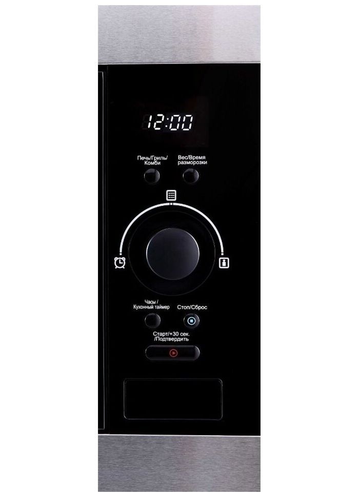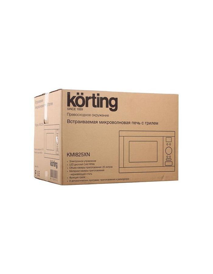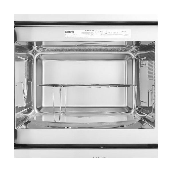Встраиваемая микроволновая печь Korting KMI 825 XN способна стать частью вашей кухни. Она изготовлена в серебристом цвете с применением черных элементов. Дизайн лаконичный и понравится вам. Korting KMI 825 XN имеет высокую мощность микроволн 900 Вт, что положительно сказывается на дальнейшей эксплуатации. Внутренний объем – 25 литров, в камеру поместится габаритная посуда. В качестве внутреннего покрытия выступает нержавеющая сталь. В конструкции присутствует гриль для приготовления различных блюд. Его мощность составляет 1000 Вт, удается быстро запекать продукты. Есть комбинированные режимы, в которых применяются микроволны и гриль. Получить основные данные вы сможете на дисплее. Удобные переключатели позволяют комфортно пользоваться микроволновой печью. Предлагается установить таймер, максимальное время – 1 час 35 минут. Производитель реализовал защиту от детей, чтобы обеспечить безопасность. Дверца навесная, надежно крепится на конструкции. Ее открывание происходит по нажатию кнопки.