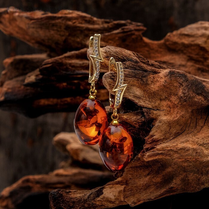 Серьги родирование "Янтарь" рис крупный, цвет коньячный