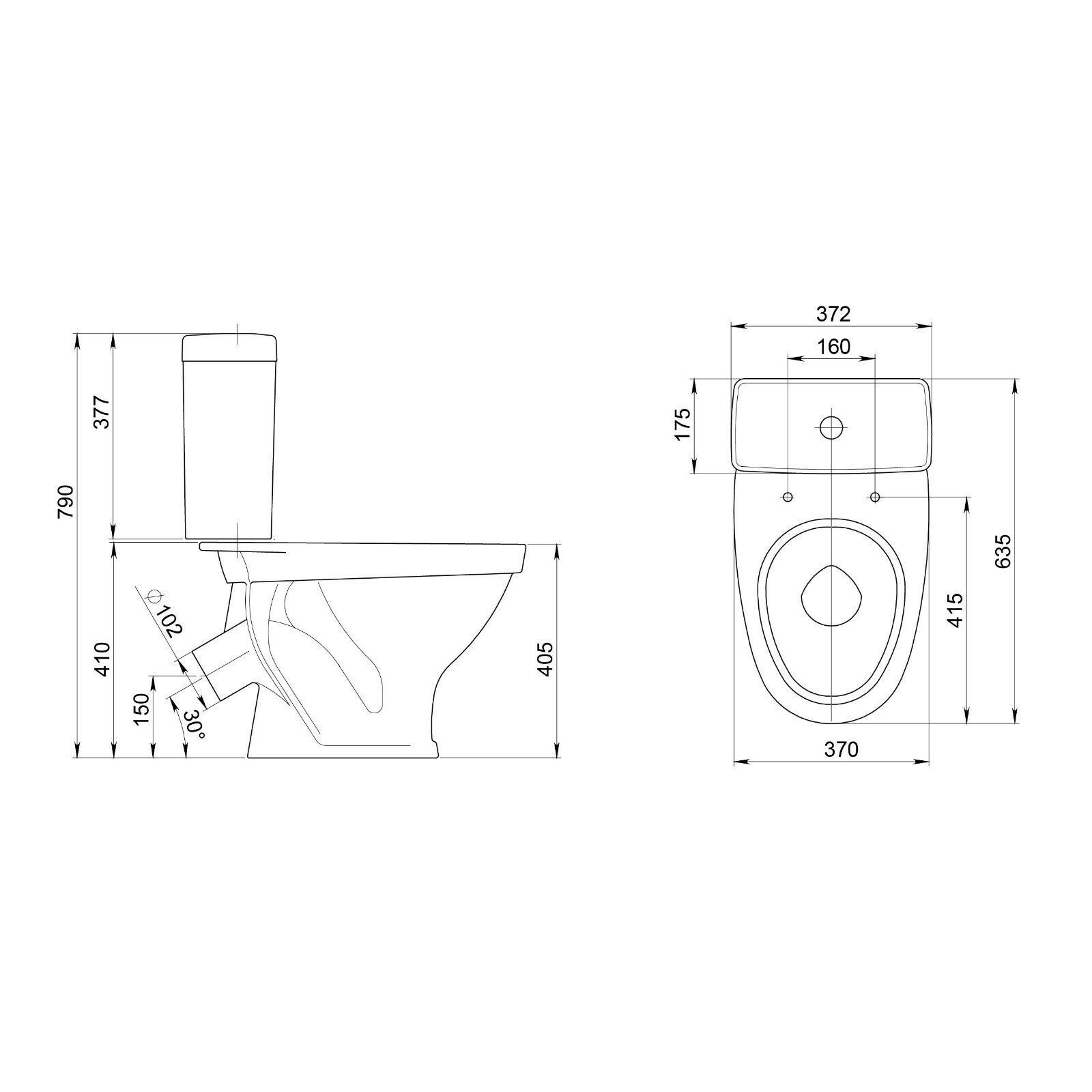 Унитаз-компакт Santeri "Соната" 1.P201.2.S00.00B.F, косой выпуск, полипропилен, белый