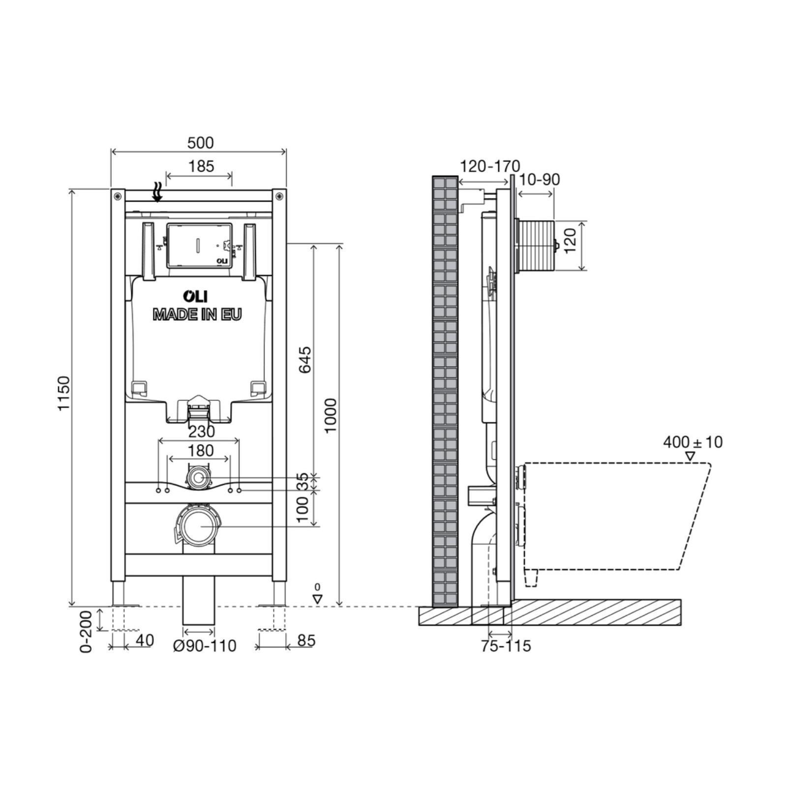 Инсталляция OLI 80 Sanitarblock 300572mSl00, для подвесного унитаза, кнопка смыва Salina