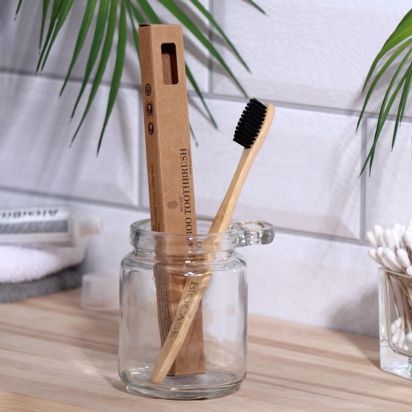 Бамбуковая зубная щётка Biocase, для взрослых, чёрная
