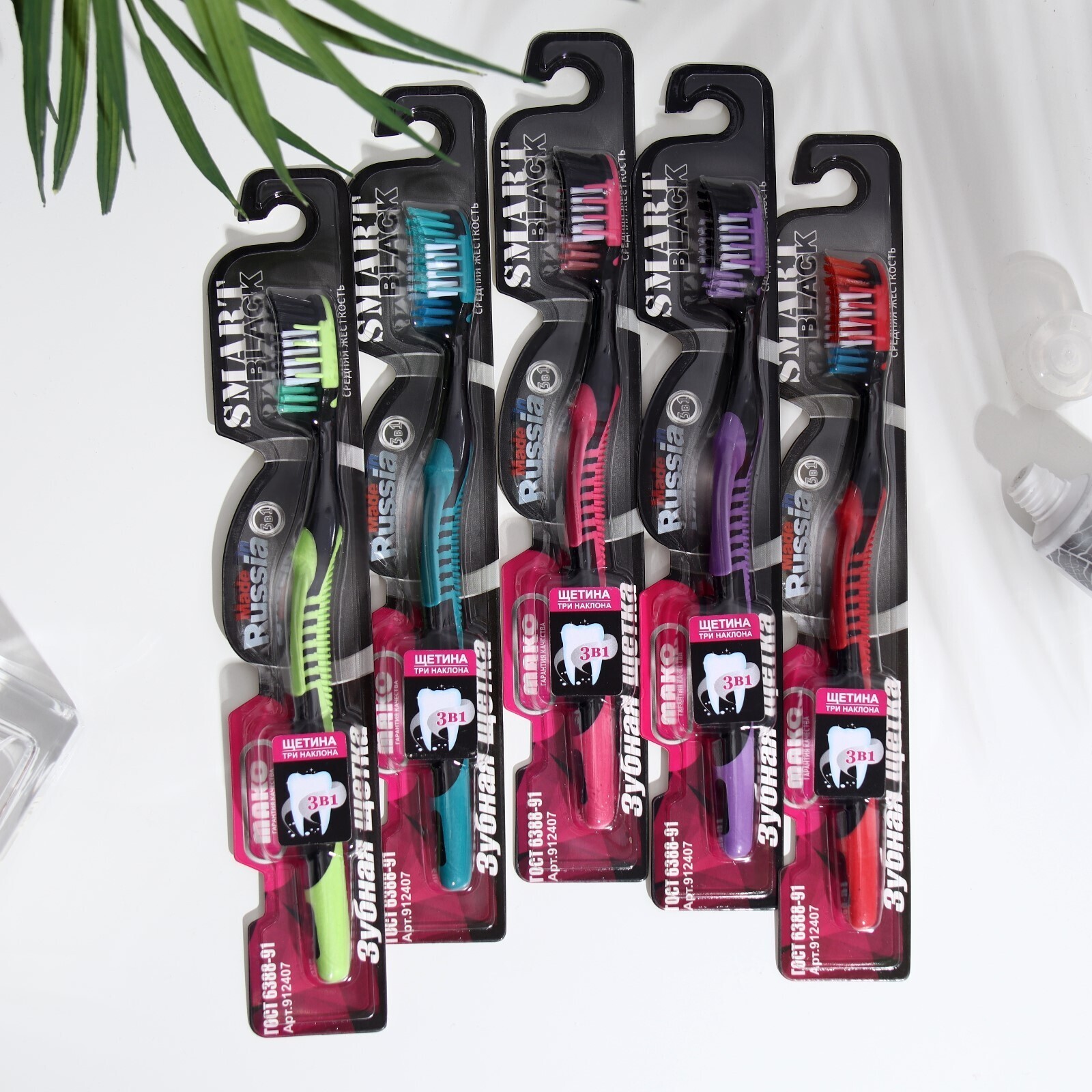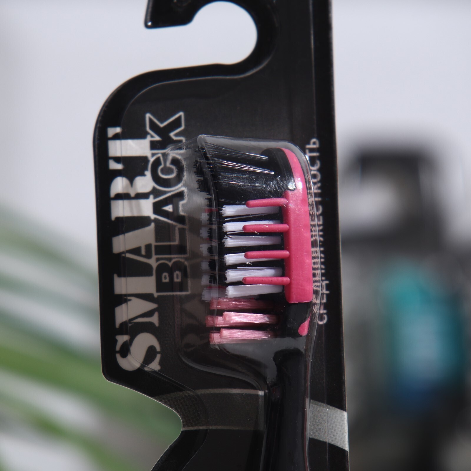 Зубная щётка «Сплит» Black средней жесткости эффективно удалит налёт и очистит полость рта, не травмируя её при этом. Специальные щетинки подстраиваются под контуры зубов, проникают даже в труднодоступные места.