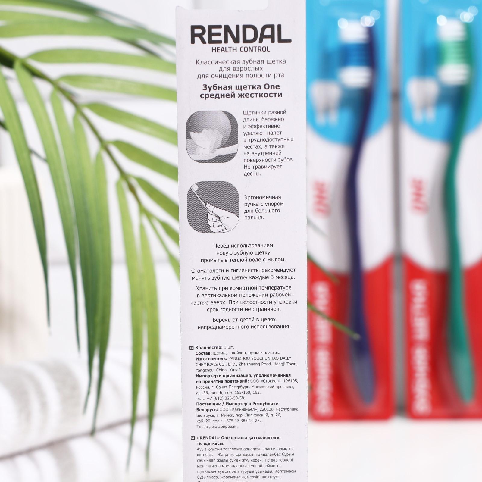 Зубная щётка Rendall One, средней жёсткости, микс, 1 шт.