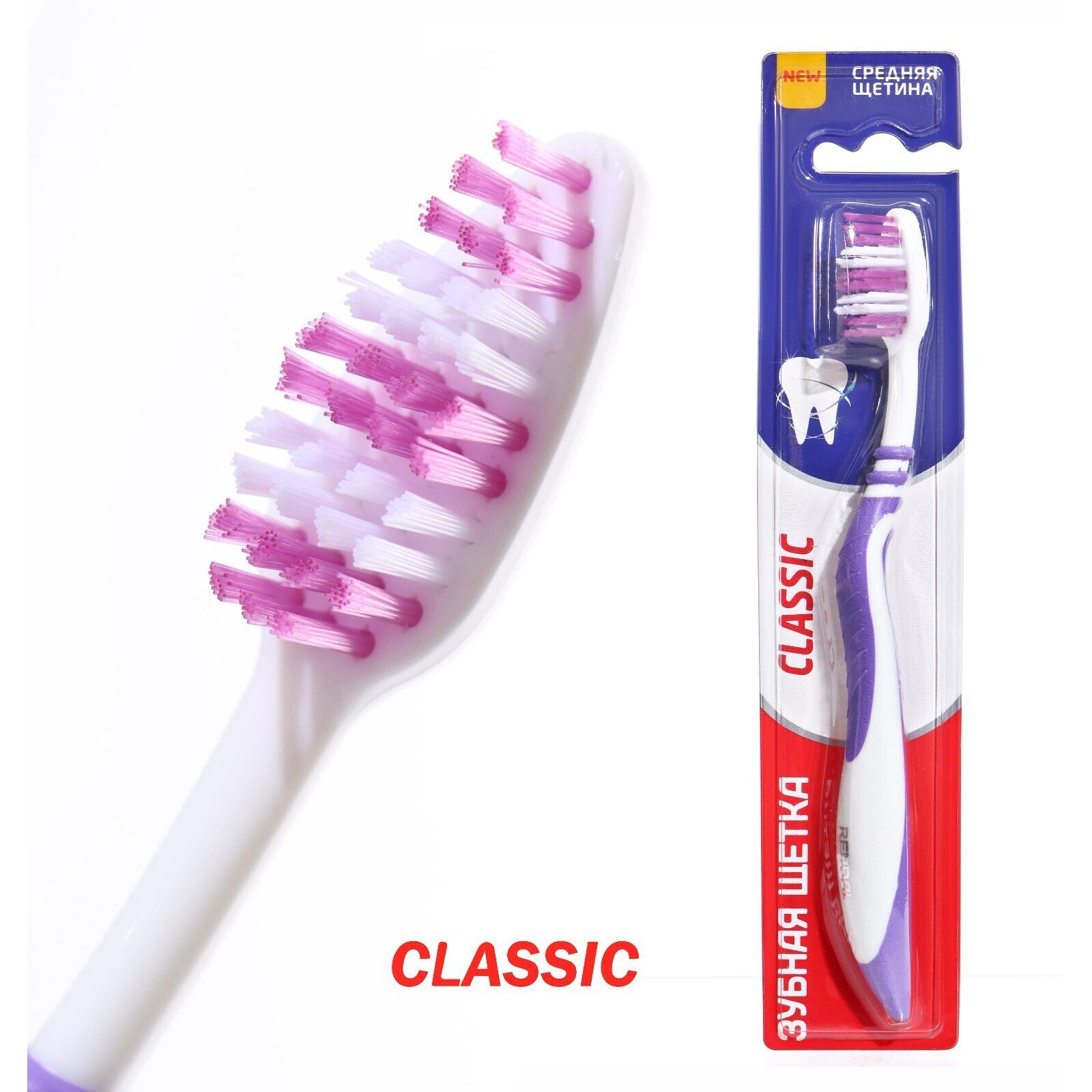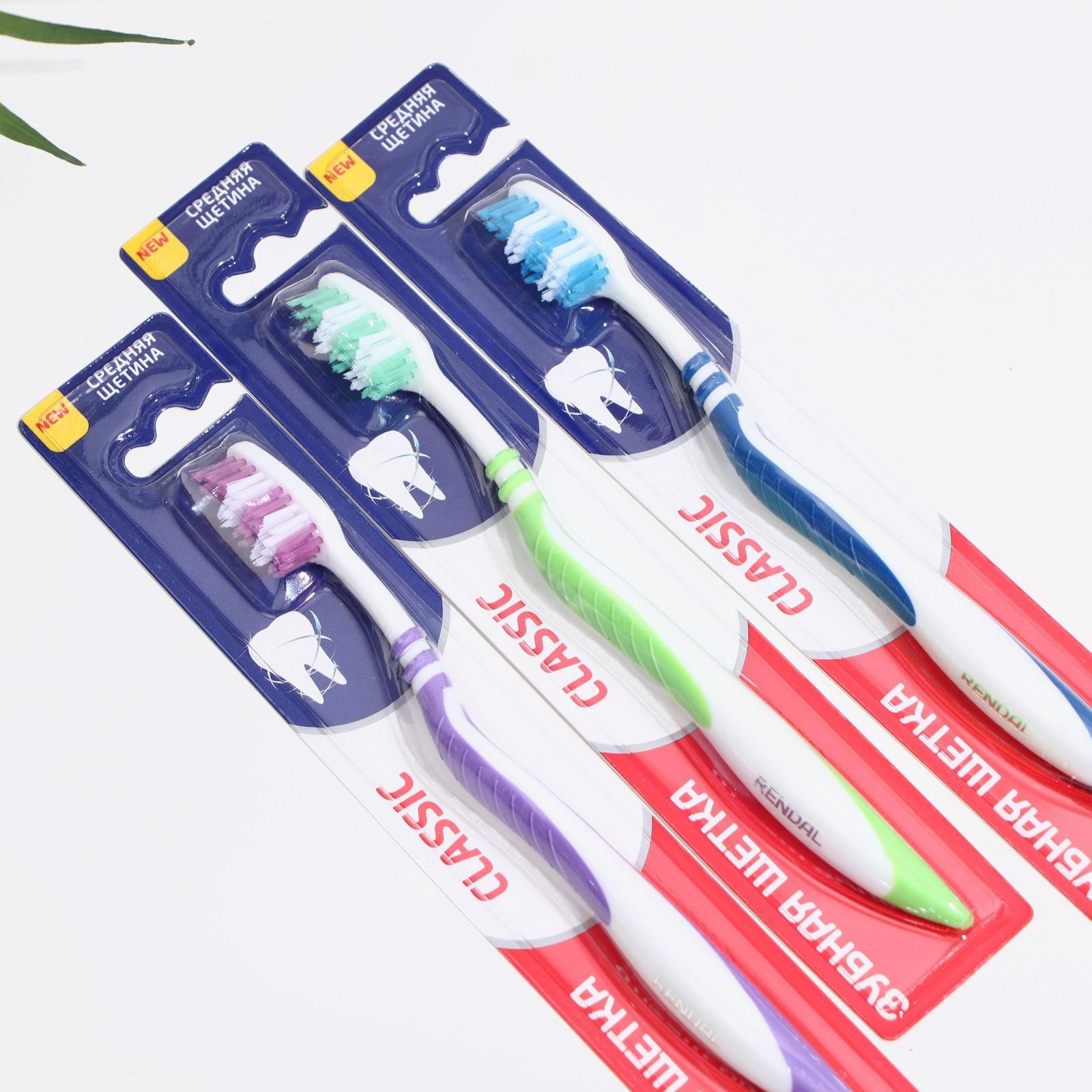 Зубная щётка Rendall Classic, средней жёсткости, микс, 1 шт.