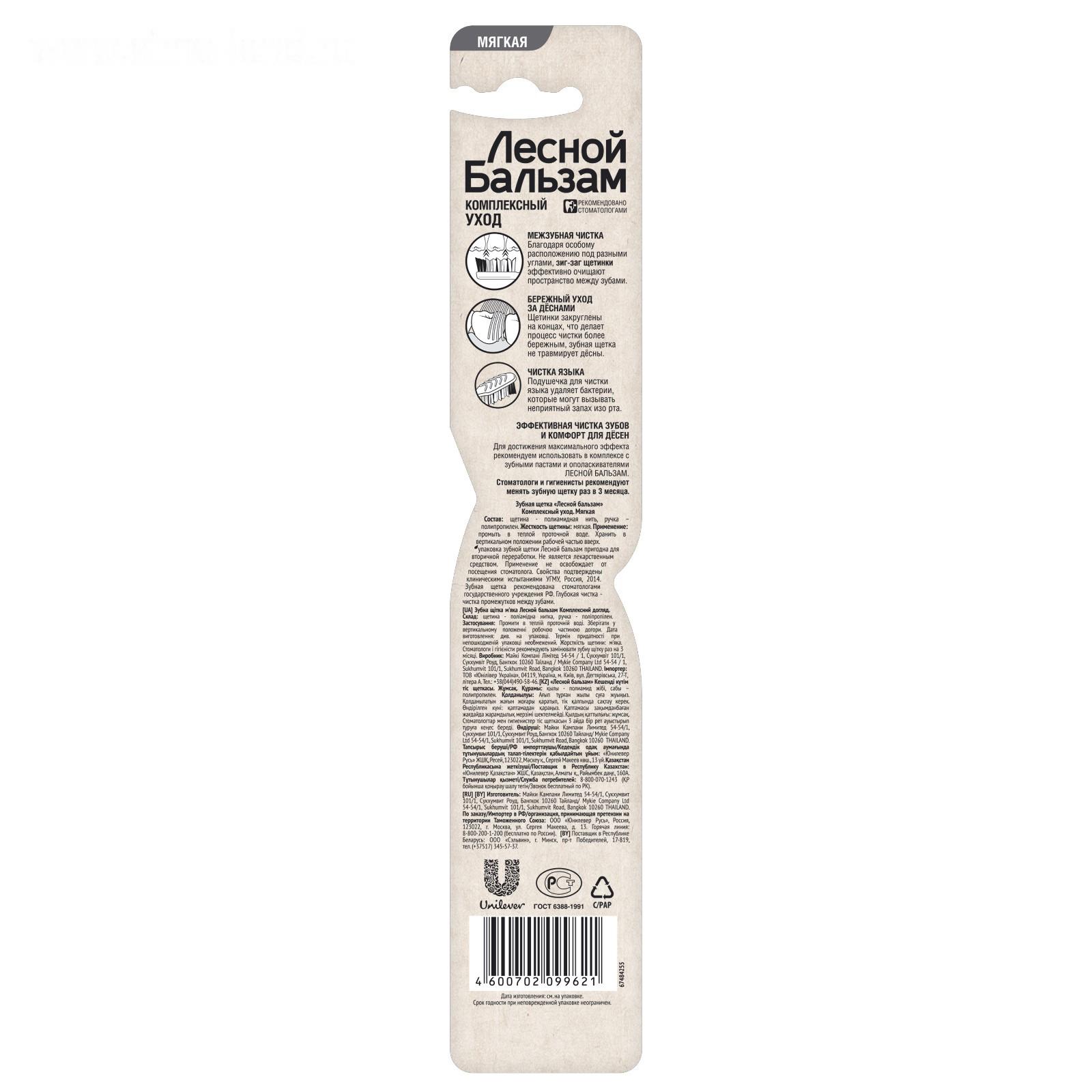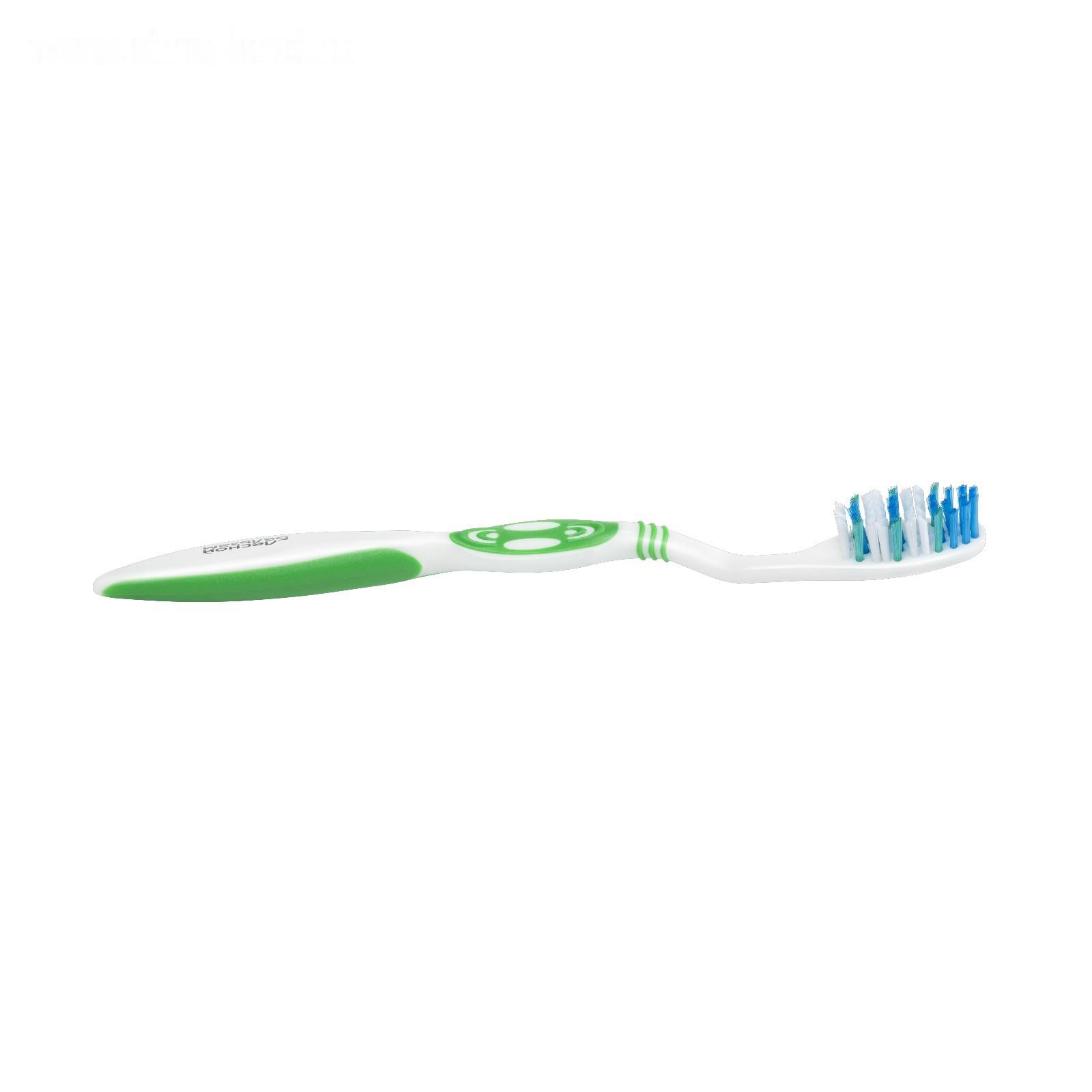 Зубная щетка «Комплексный уход» обеспечивает базовый ежедневный уход за зубами при ослабленных деснах. Щетинки зубной щетки имеют разный уровень по высоте и закруглены на концах. Такая форма щетинок позволяет тщательно удалять налет с эмали зубов и очищать труднодоступные места, не травмируя десны.
